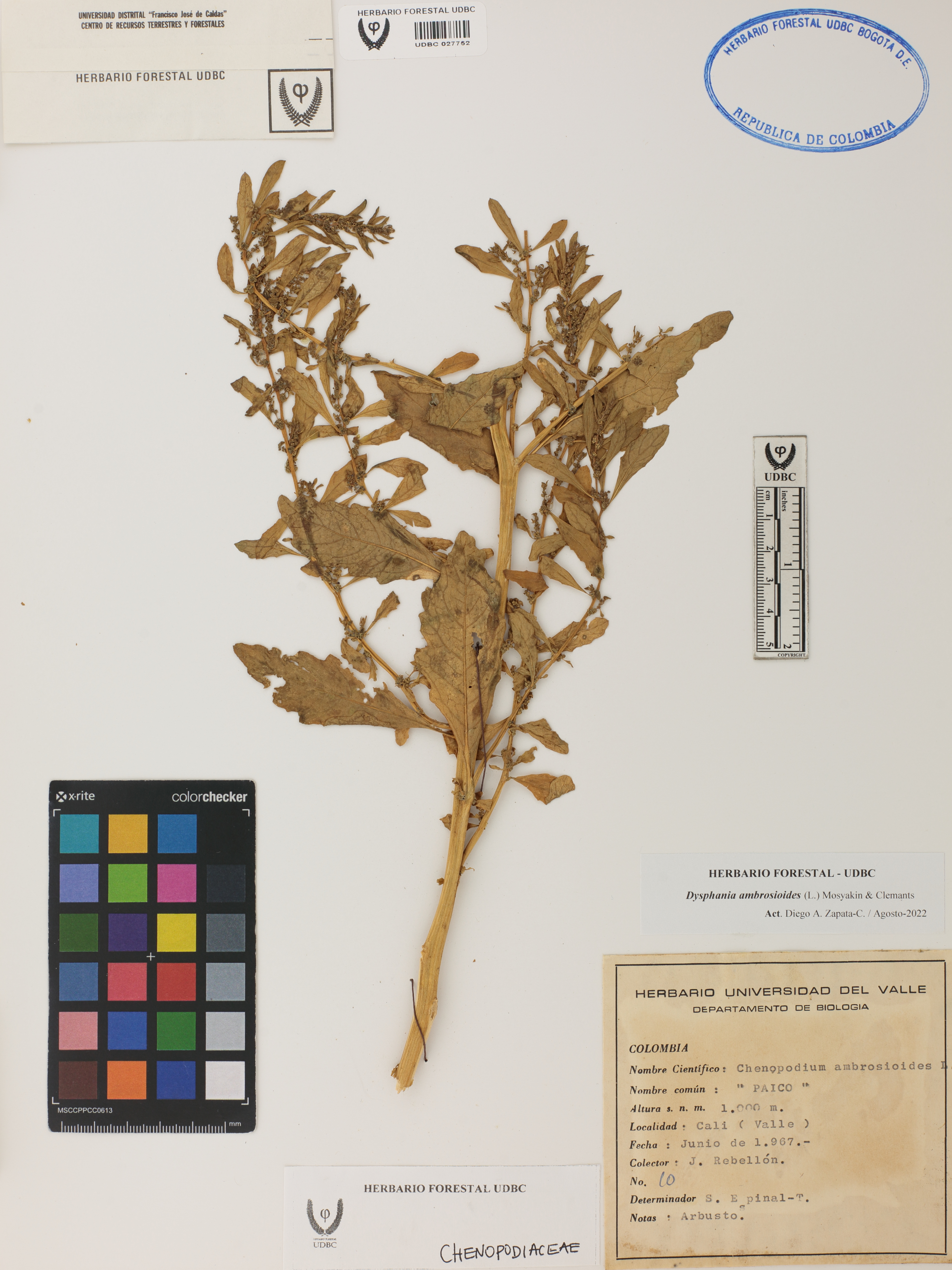 | dc.description | Fotografía del ejemplar Rebellón, J. 10, determinado como Dysphania ambrosioides en el año 1967 | |