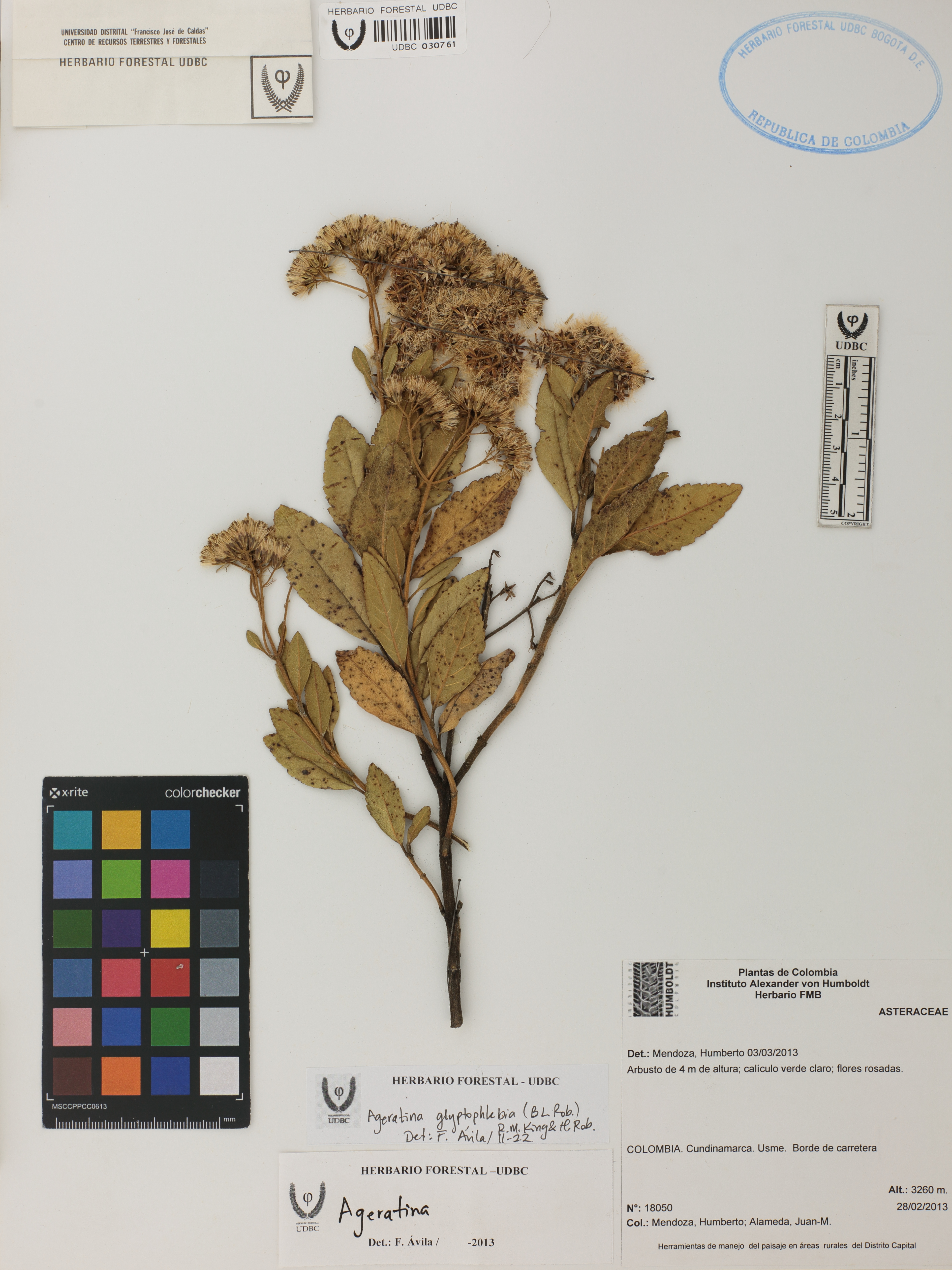 Fotografía del ejemplar Mendoza, H. 18050, determinado como Ageratina glyptophlebia en el año 2022
