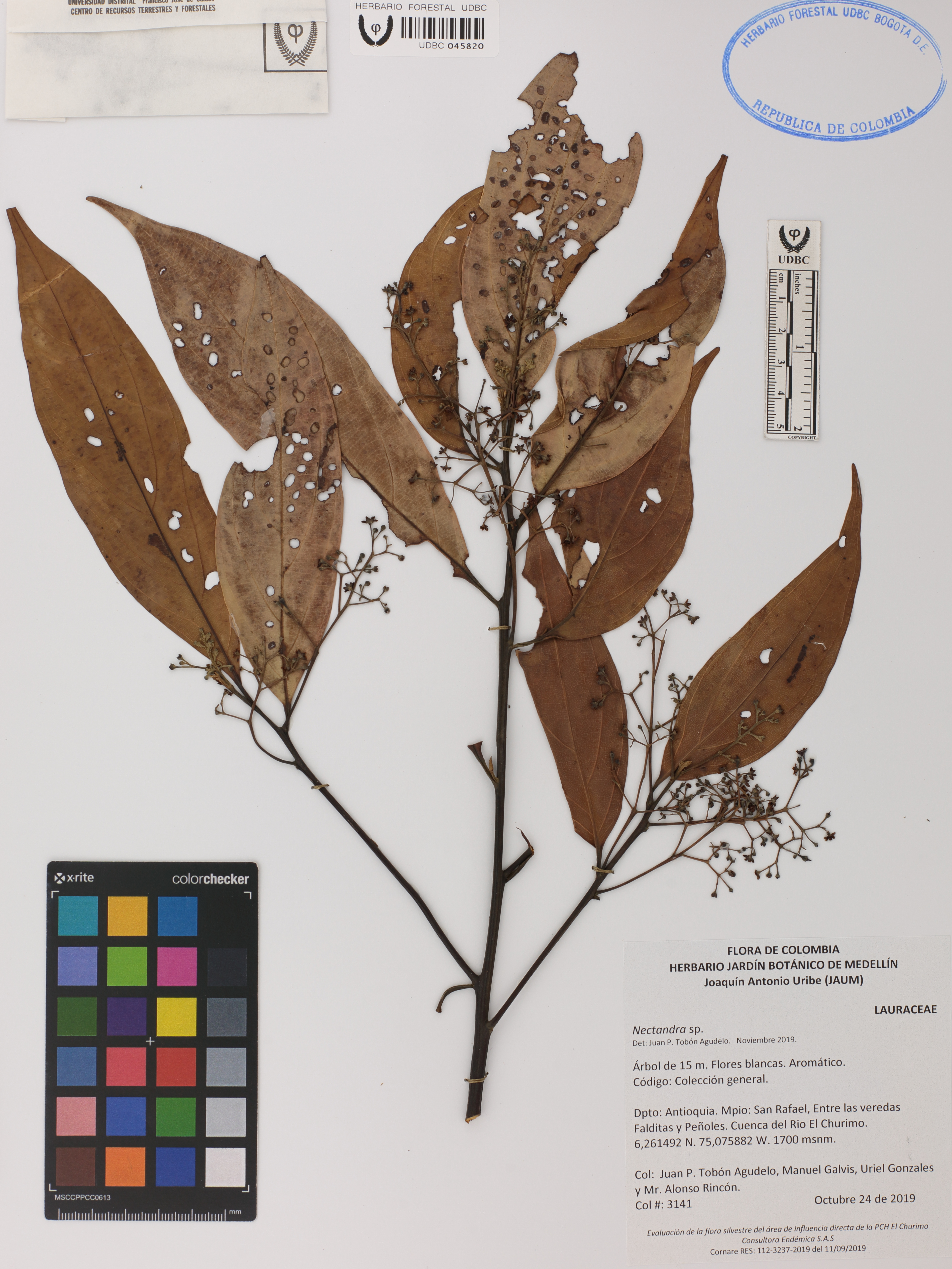 | dc.description | Fotografía del ejemplar Tobón-Agudelo, J. 3141, determinado como Nectandra sp. en el año 2019 | |