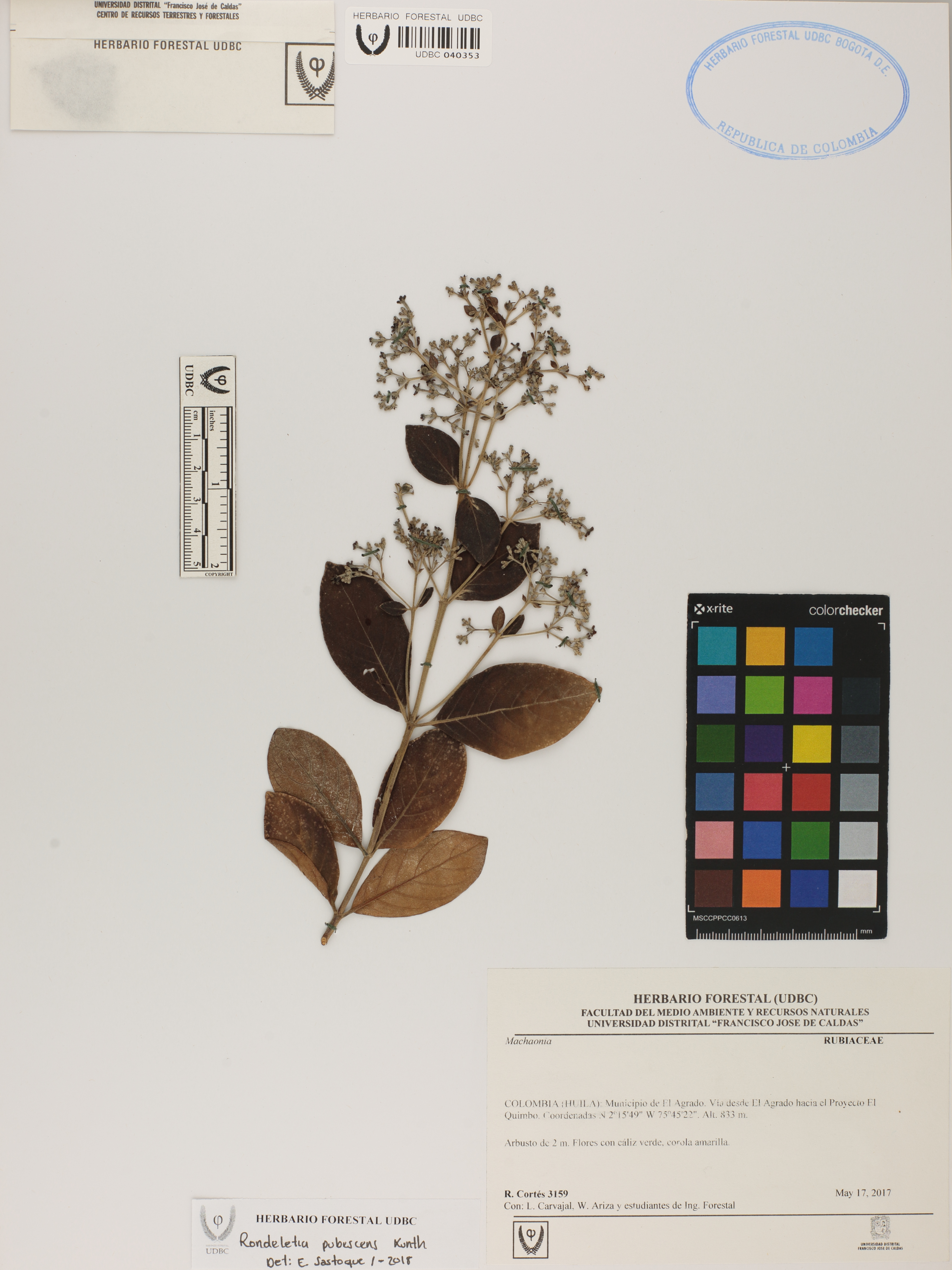 | dc.description | Fotografía del ejemplar Cortés, R. 3159, determinado como Rondeletia pubescens en el año 2015 | |