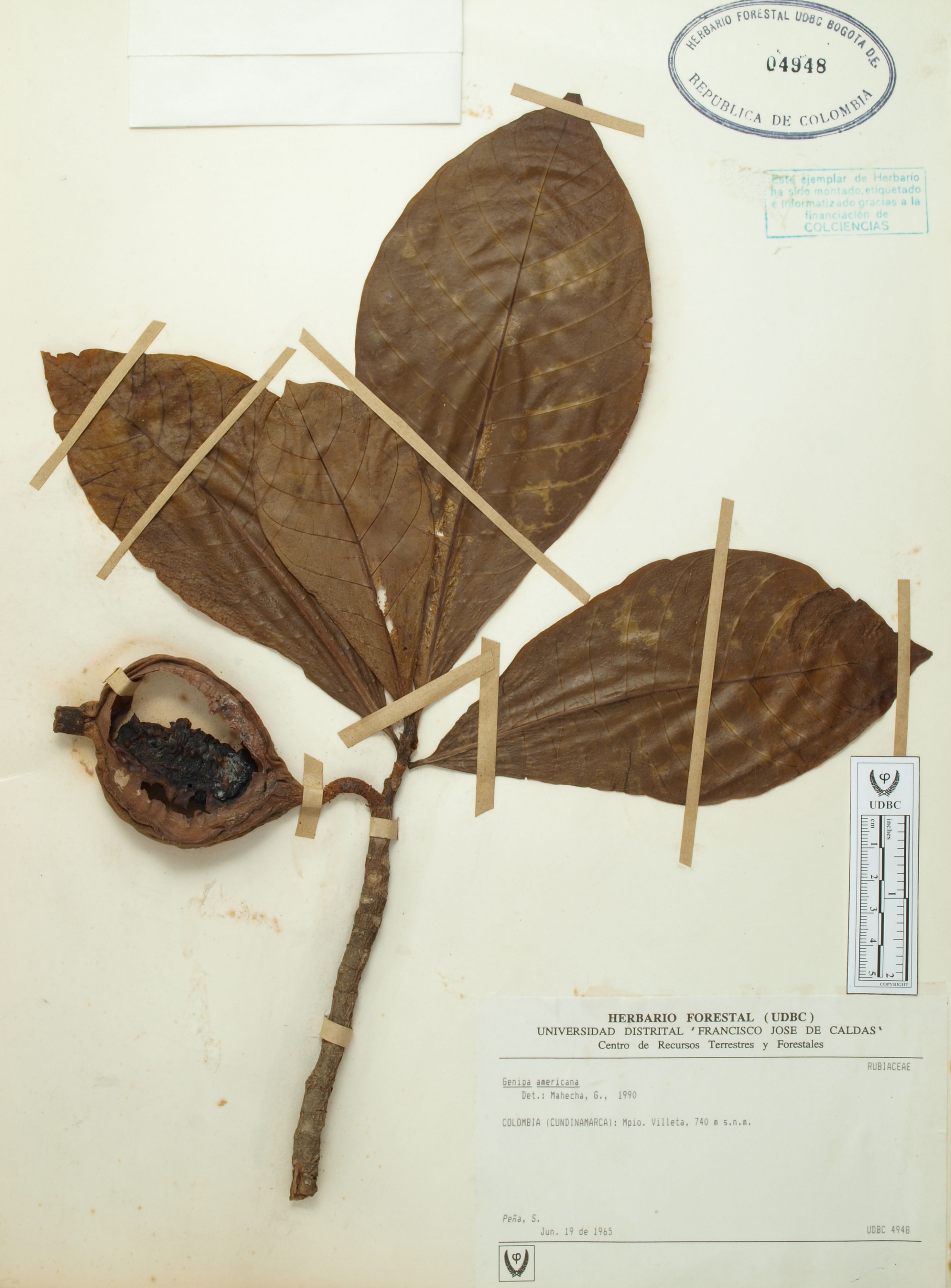 Fotografía del ejemplar Peña, S., determinado como Genipa americana en el año 1990