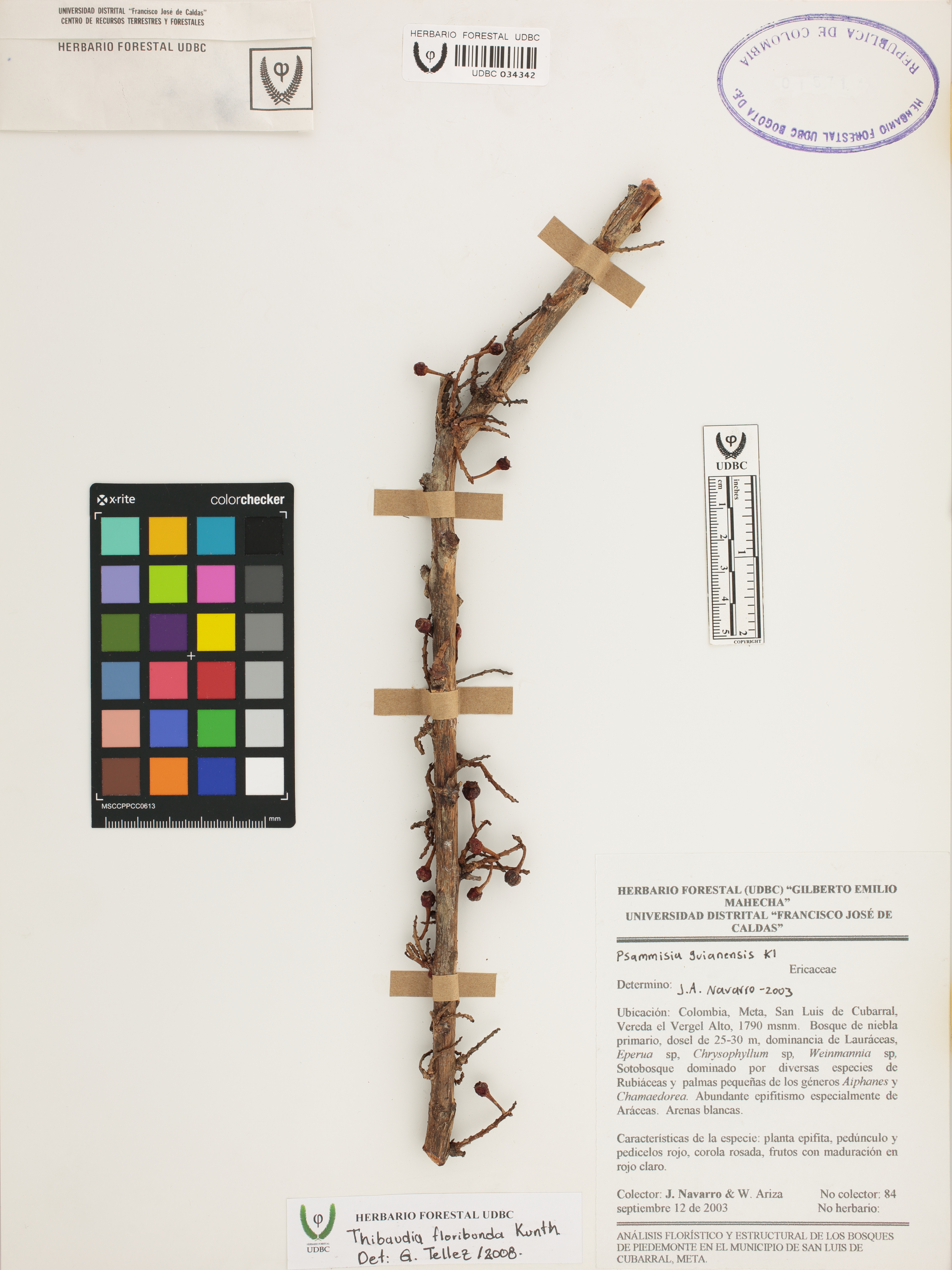 Fotografía del ejemplar Navarro, J. 84, determinado como Thibaudia floribunda en el año 2008