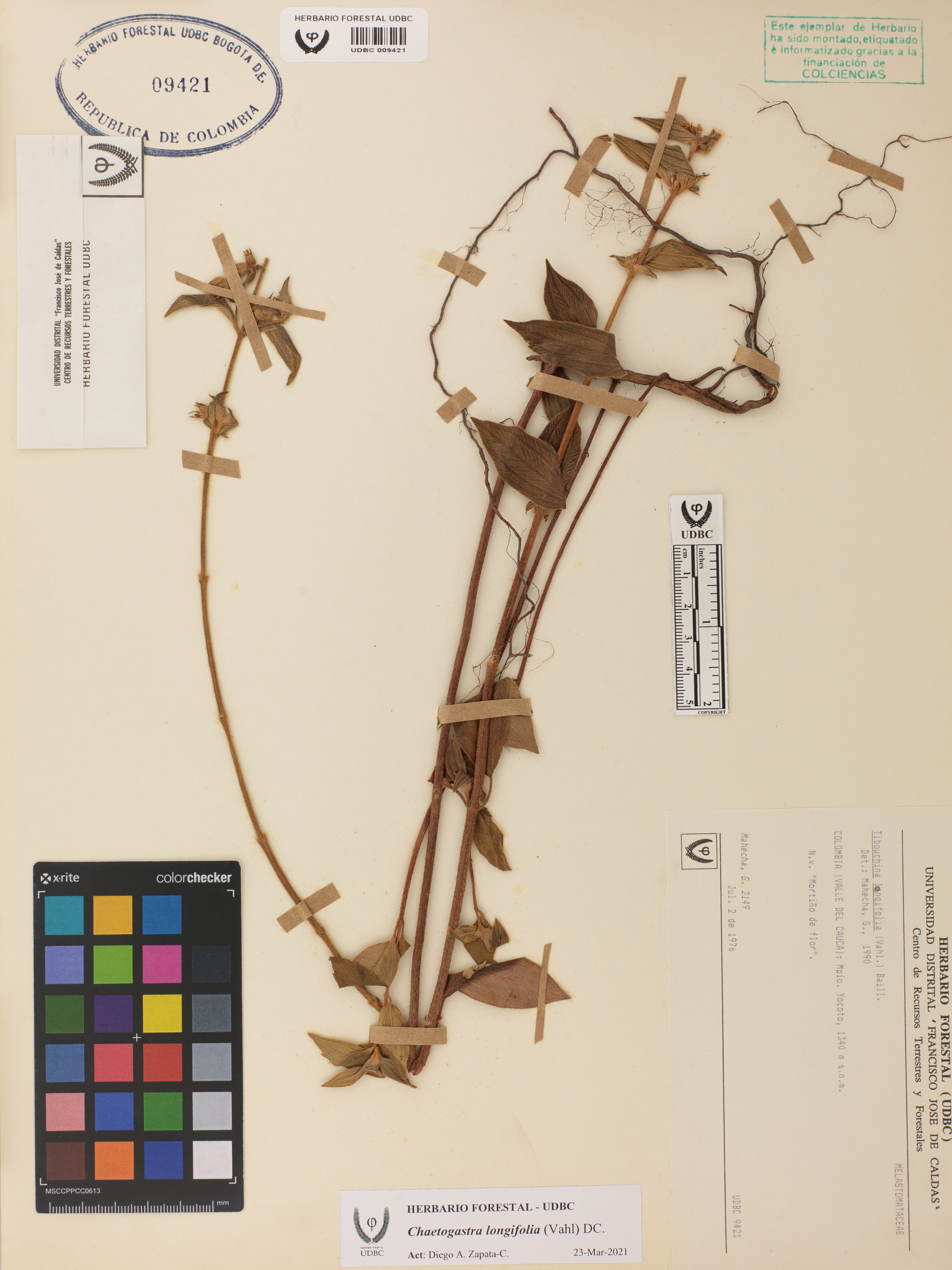 Fotografía del ejemplar Mahecha, G. 2149, determinado como Chaetogastra longifolia