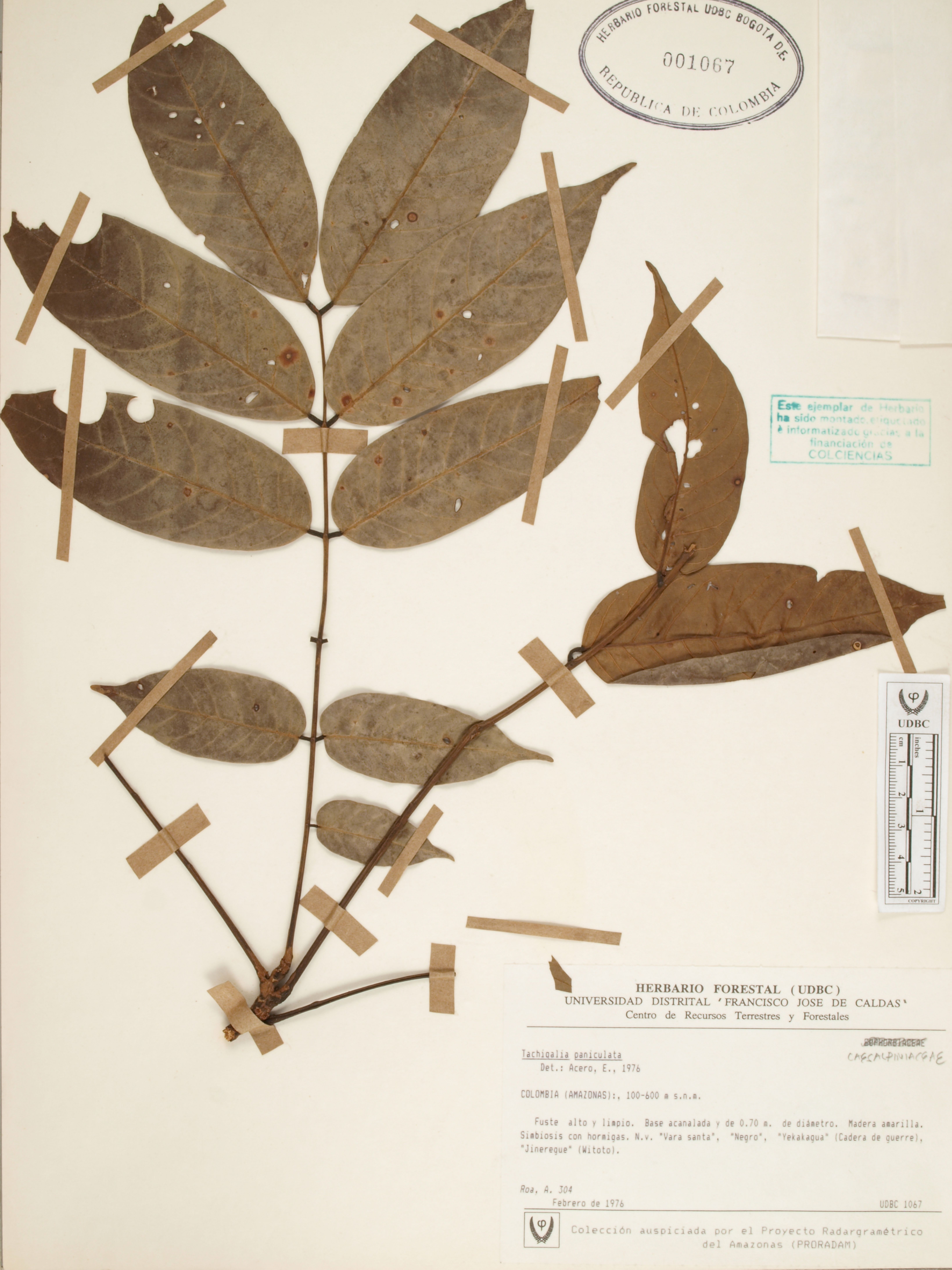 Fotografía del ejemplar Roa, A. 304, determinado como Tachigali paniculata en el año 1976