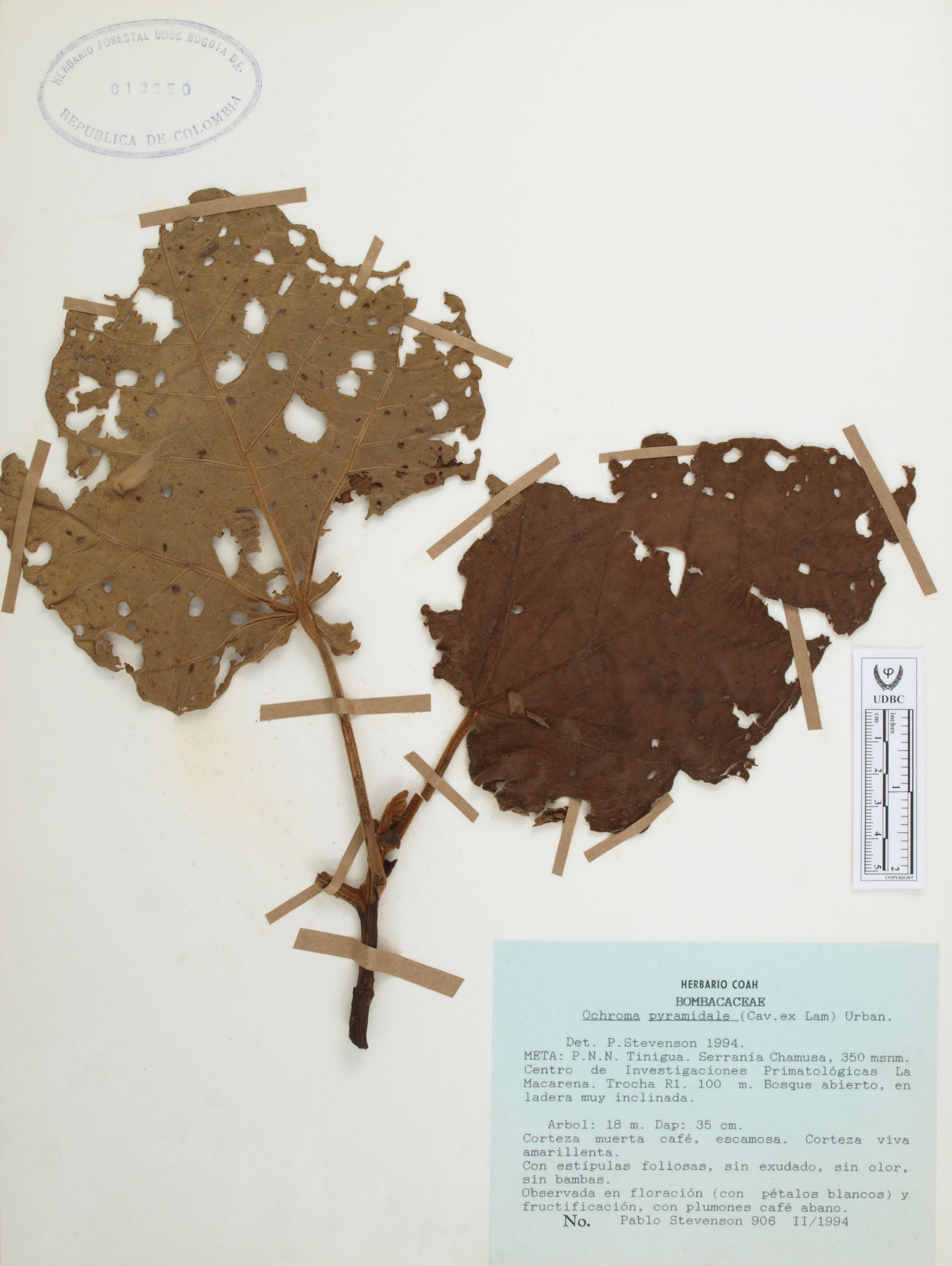 Fotografía del ejemplar Stevenson, P. 906, determinado como Ochroma pyramidale en el año 1994