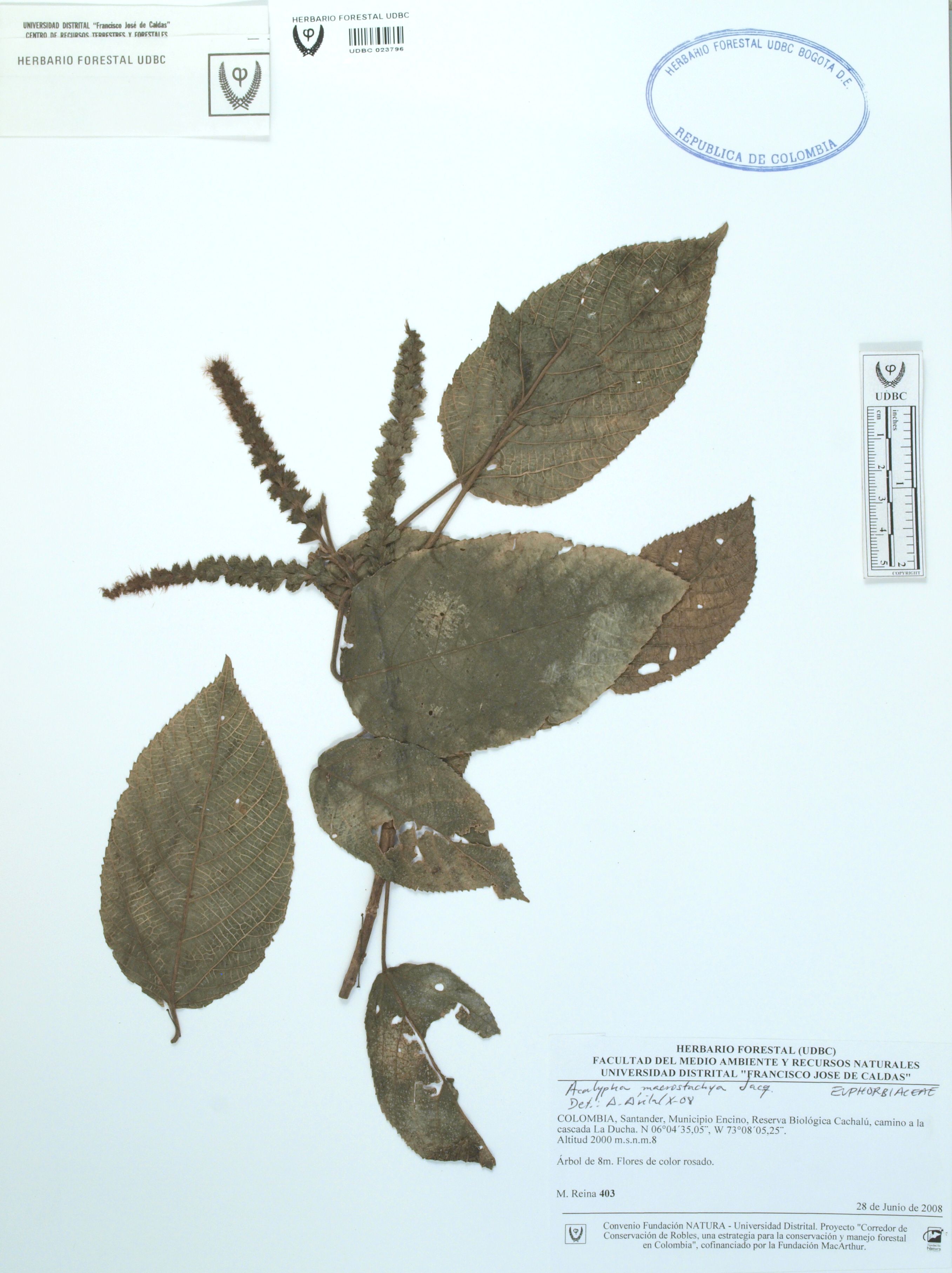 Fotografía del ejemplar Reina, M. 403, determinado como Acalypha macrostachya en el año 2008