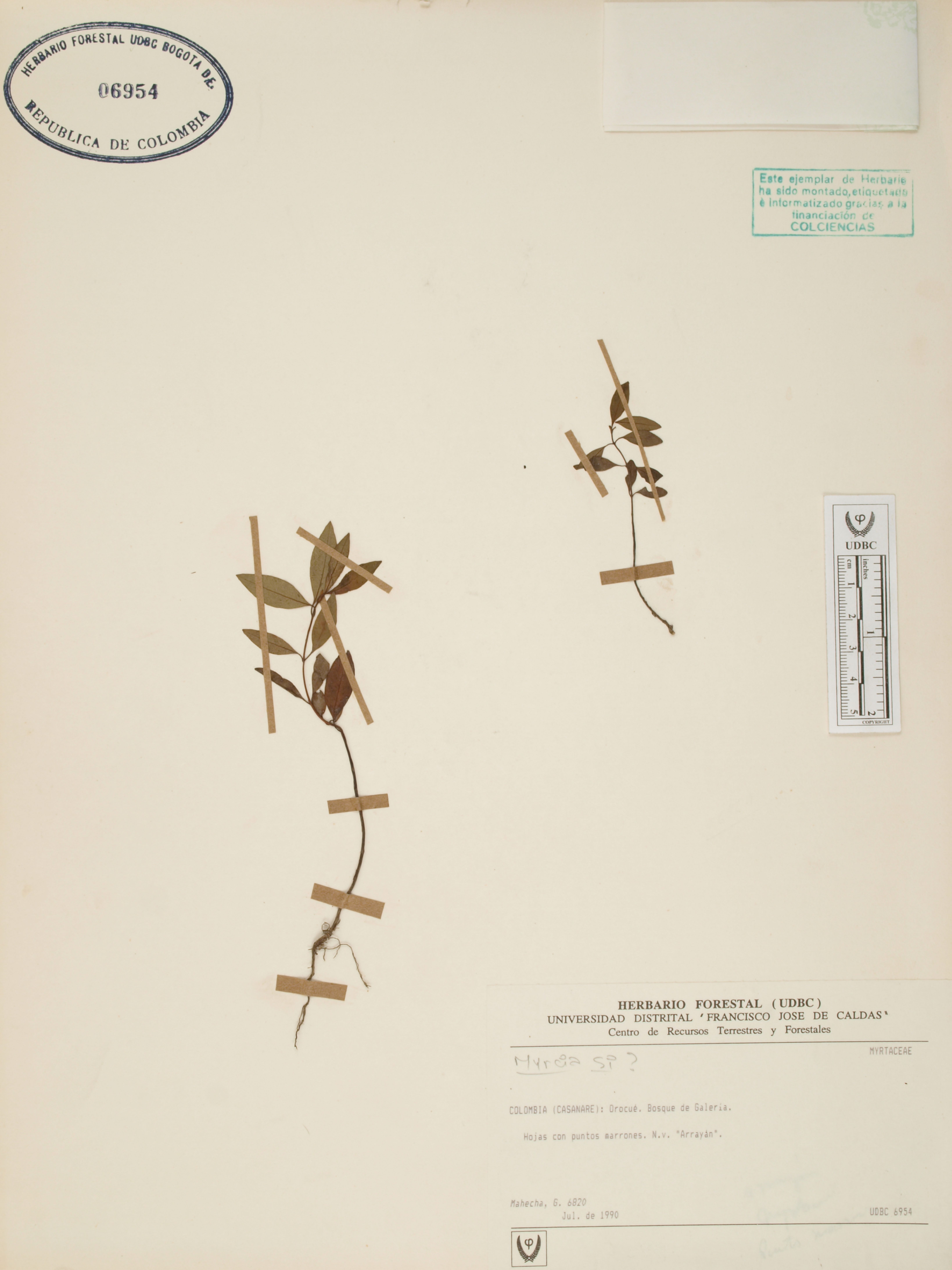 | dc.description | Fotografía del ejemplar Mahecha, G. 6820, determinado como Myrcia sp. en el año 1995 | |