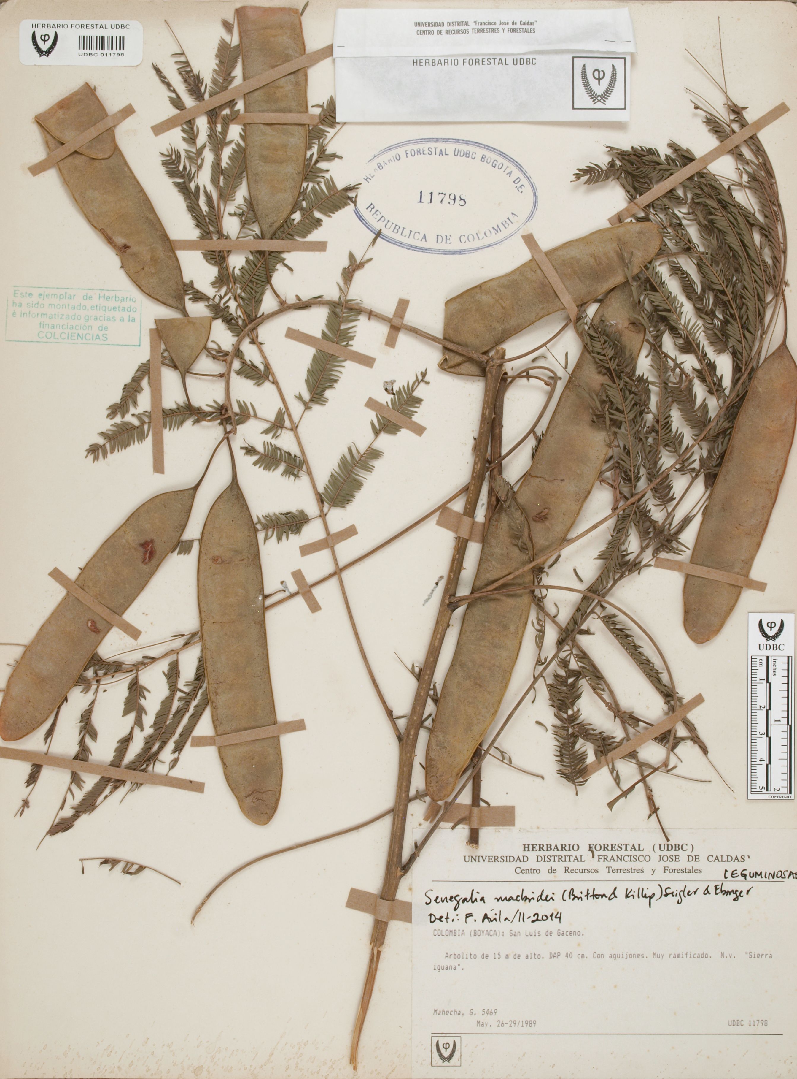 Fotografía del ejemplar Mahecha, G. 5469, determinado como Senegalia macbridei en el año 2014