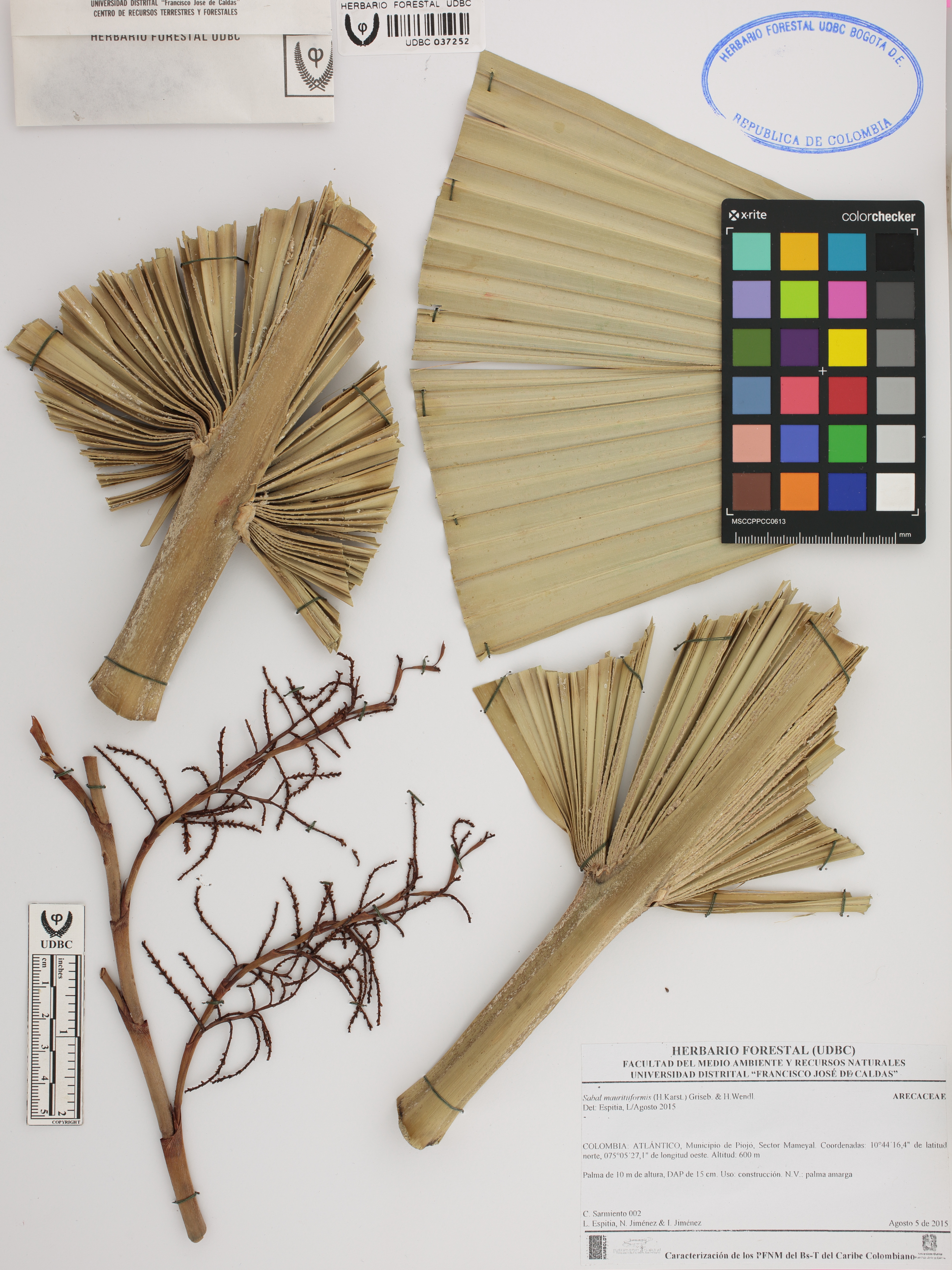Fotografía del ejemplar Sarmiento, C. 2, determinado como Sabal mauritiiformis en el año 2015