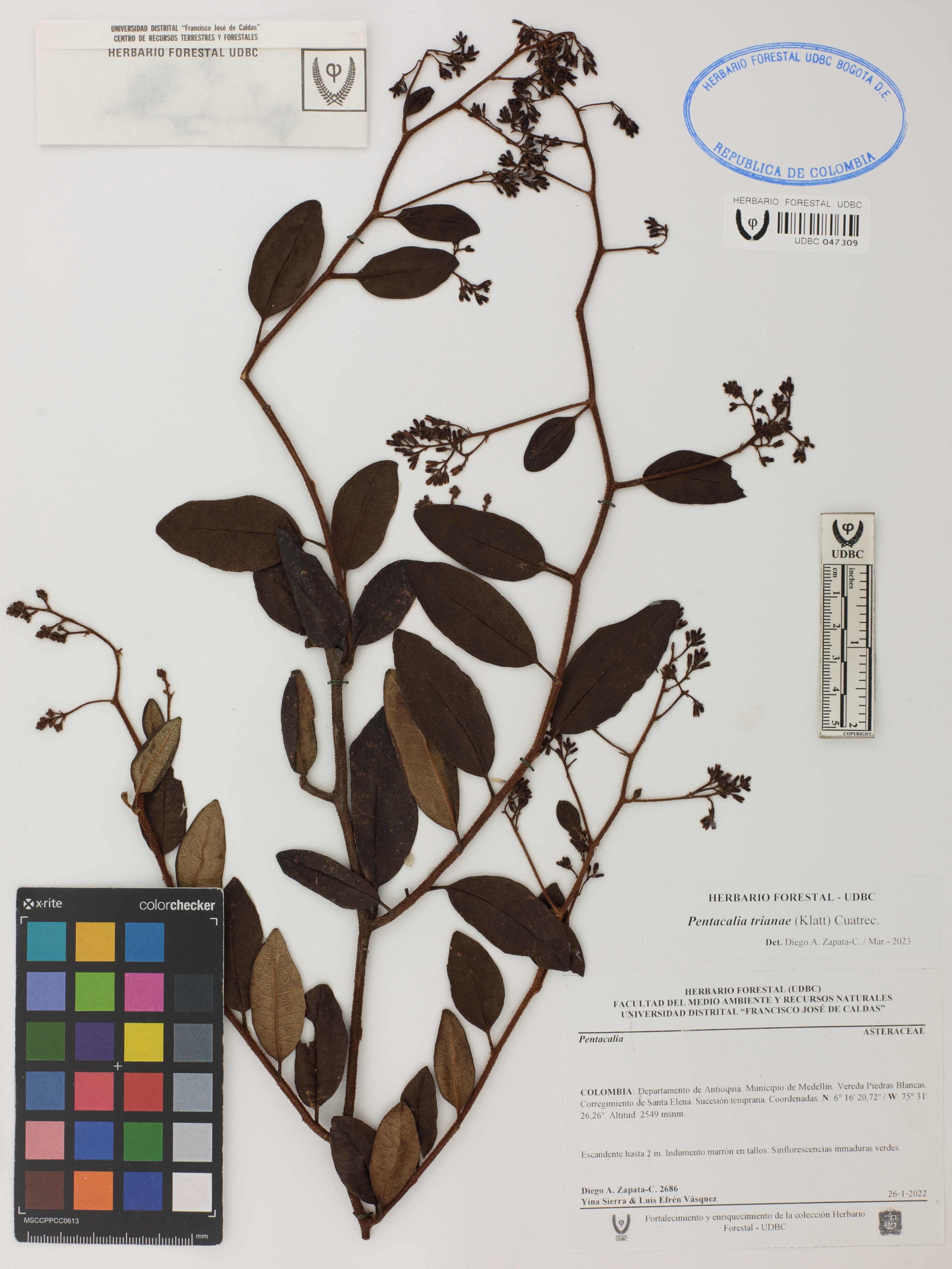 Fotografía del ejemplar Zapata-C., D. 2686, determinado como Pentacalia trianae en el año 2023