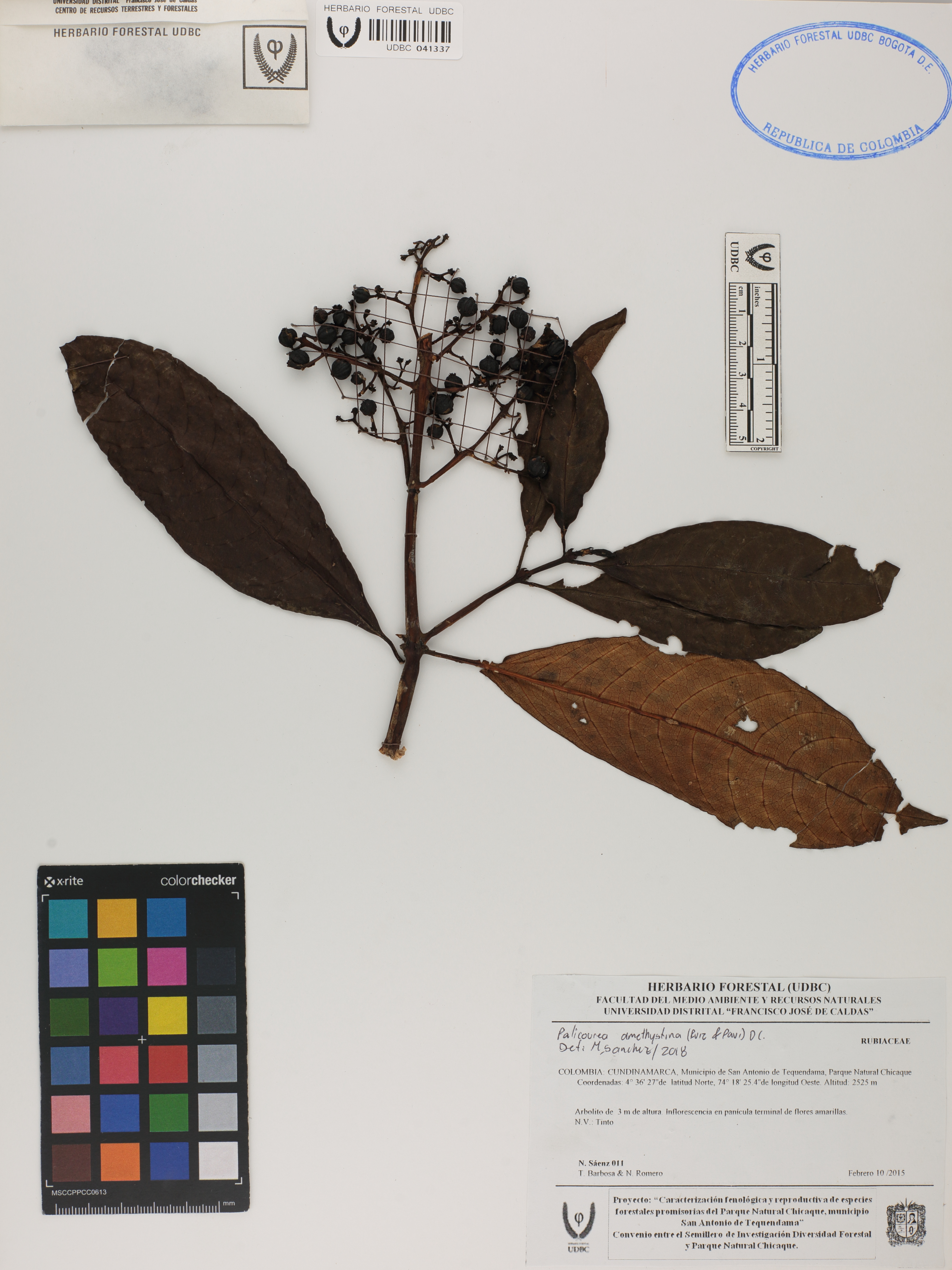 | dc.description | Fotografía del ejemplar Sáenz, N. 11, determinado como Palicourea amethystina en el año 2018 | |