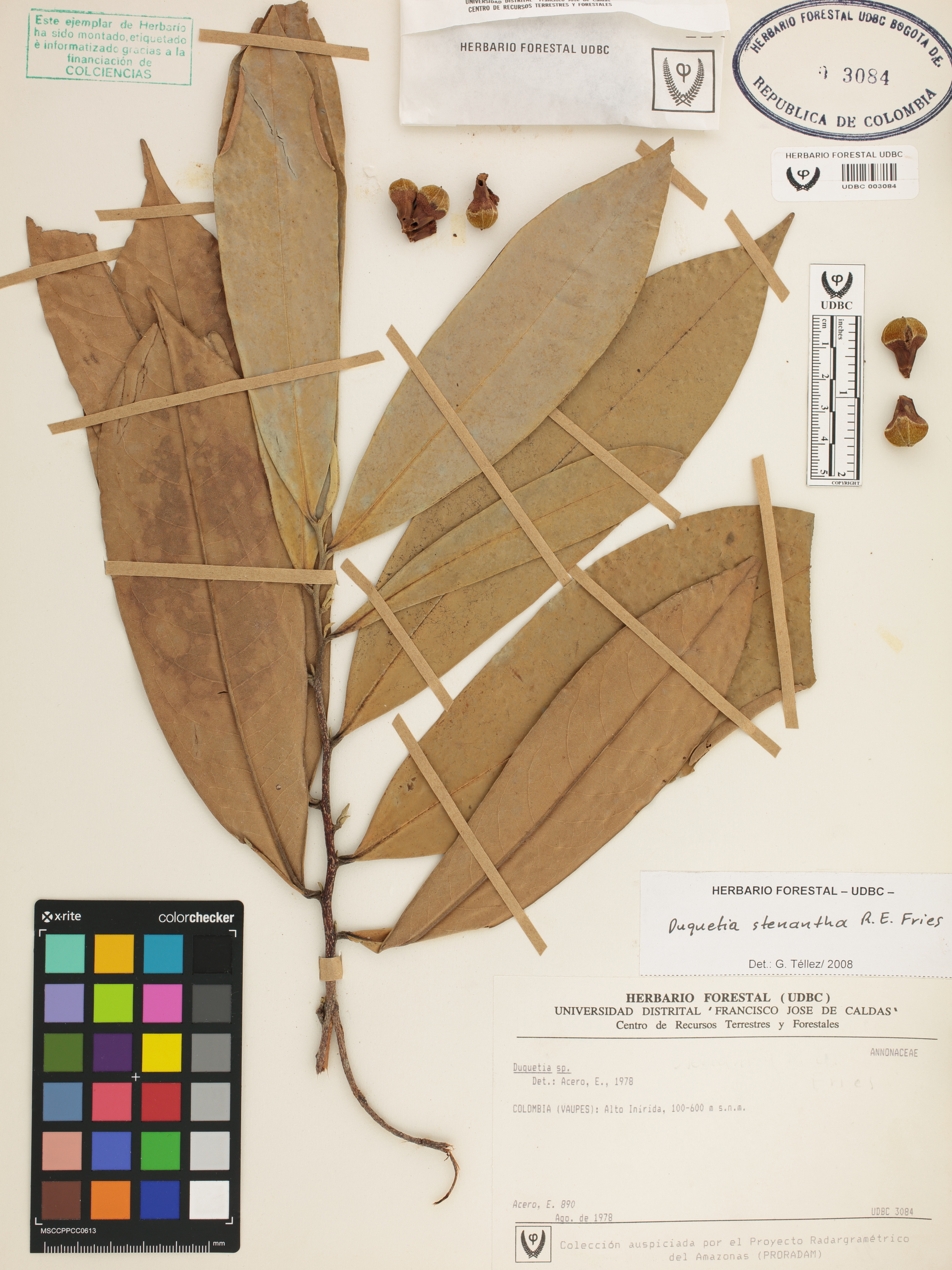 Fotografía del ejemplar Acero, E. 890, determinado como Duguetia stenantha en el año 2008