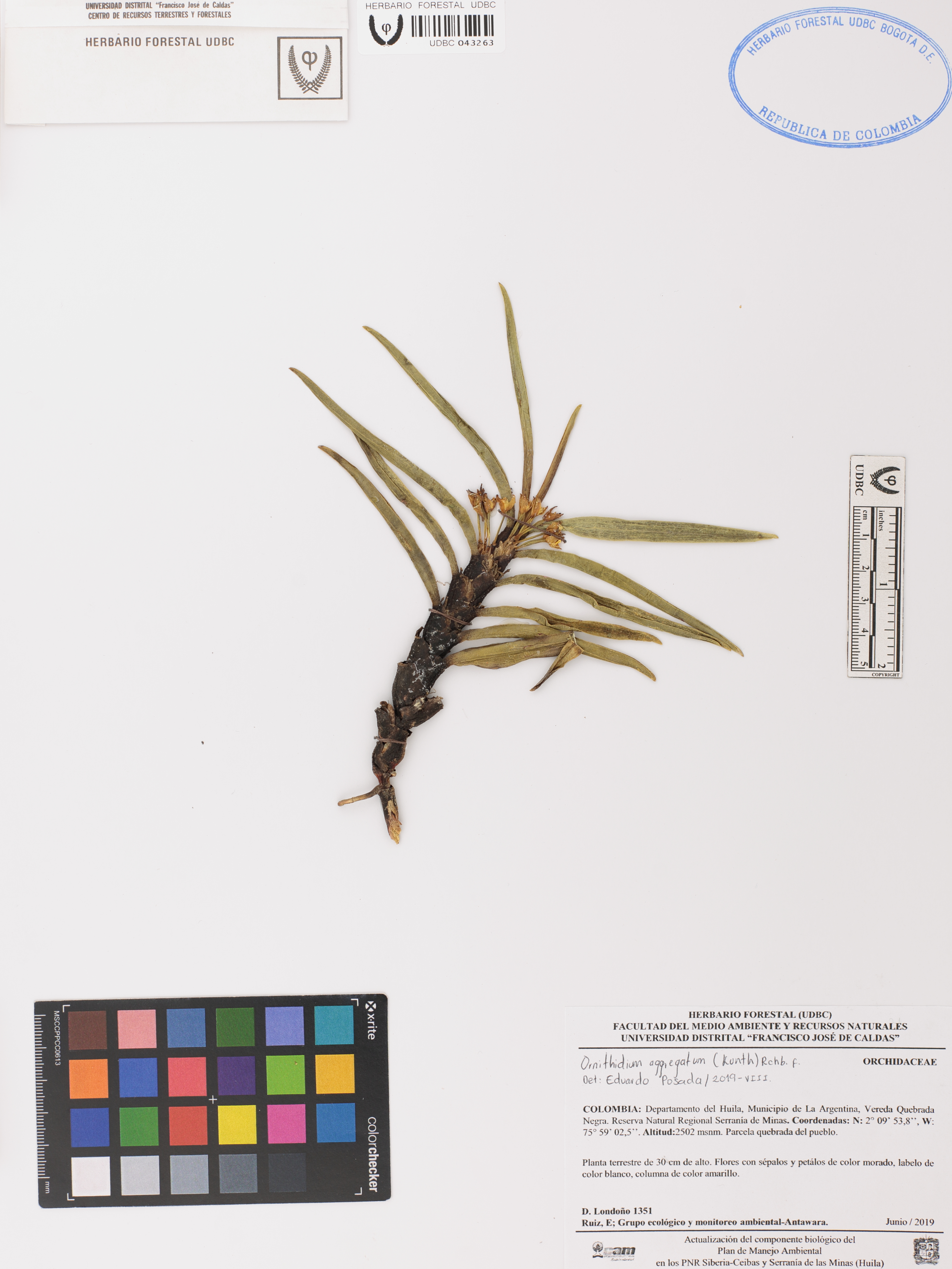 Fotografía del ejemplar Londoño, D. 1351, determinado como Ornithidium aggregatum en el año 2019