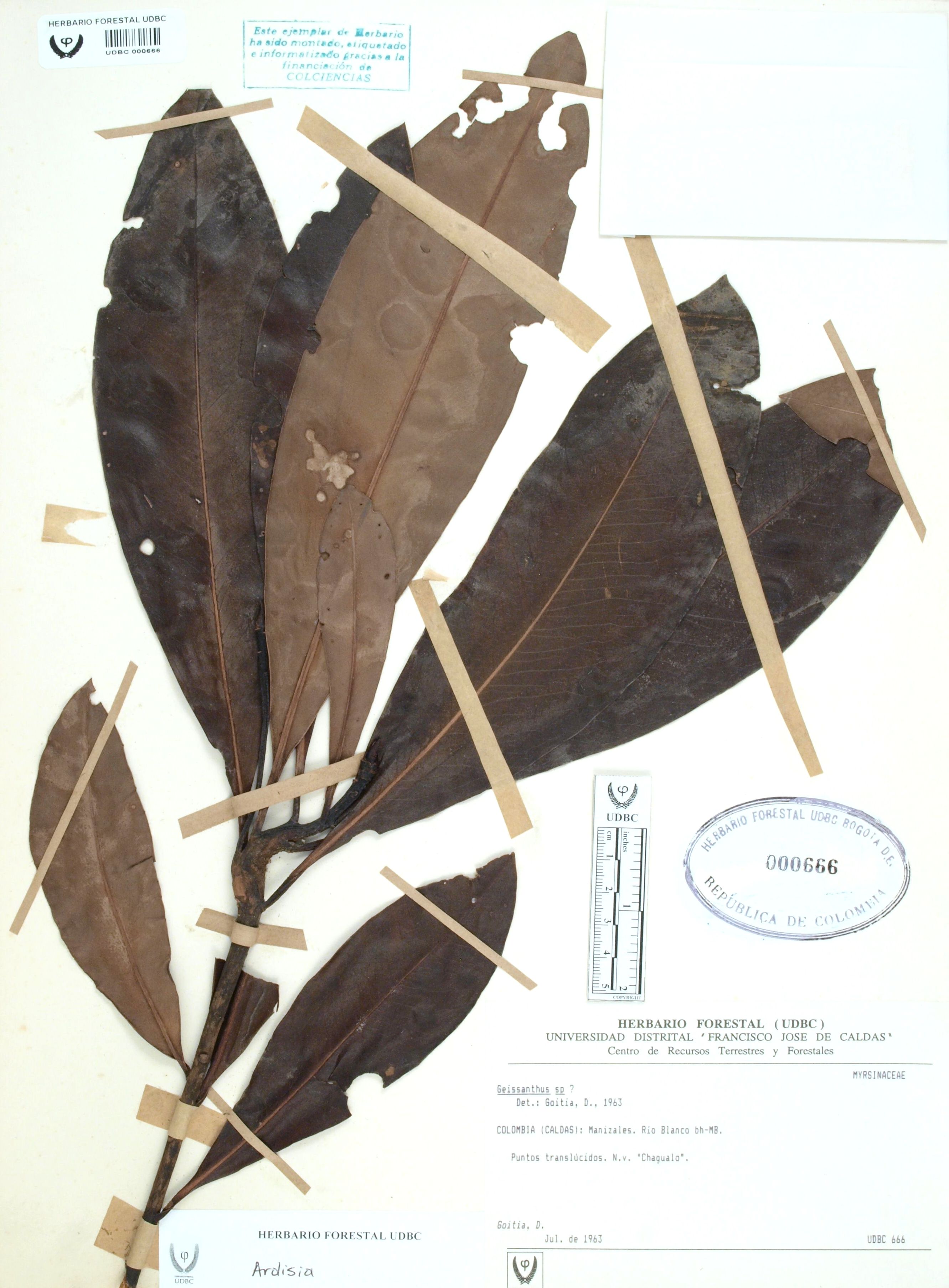 | dc.description | Fotografía del ejemplar Goitia, D., determinado como Ardisia sp. | |