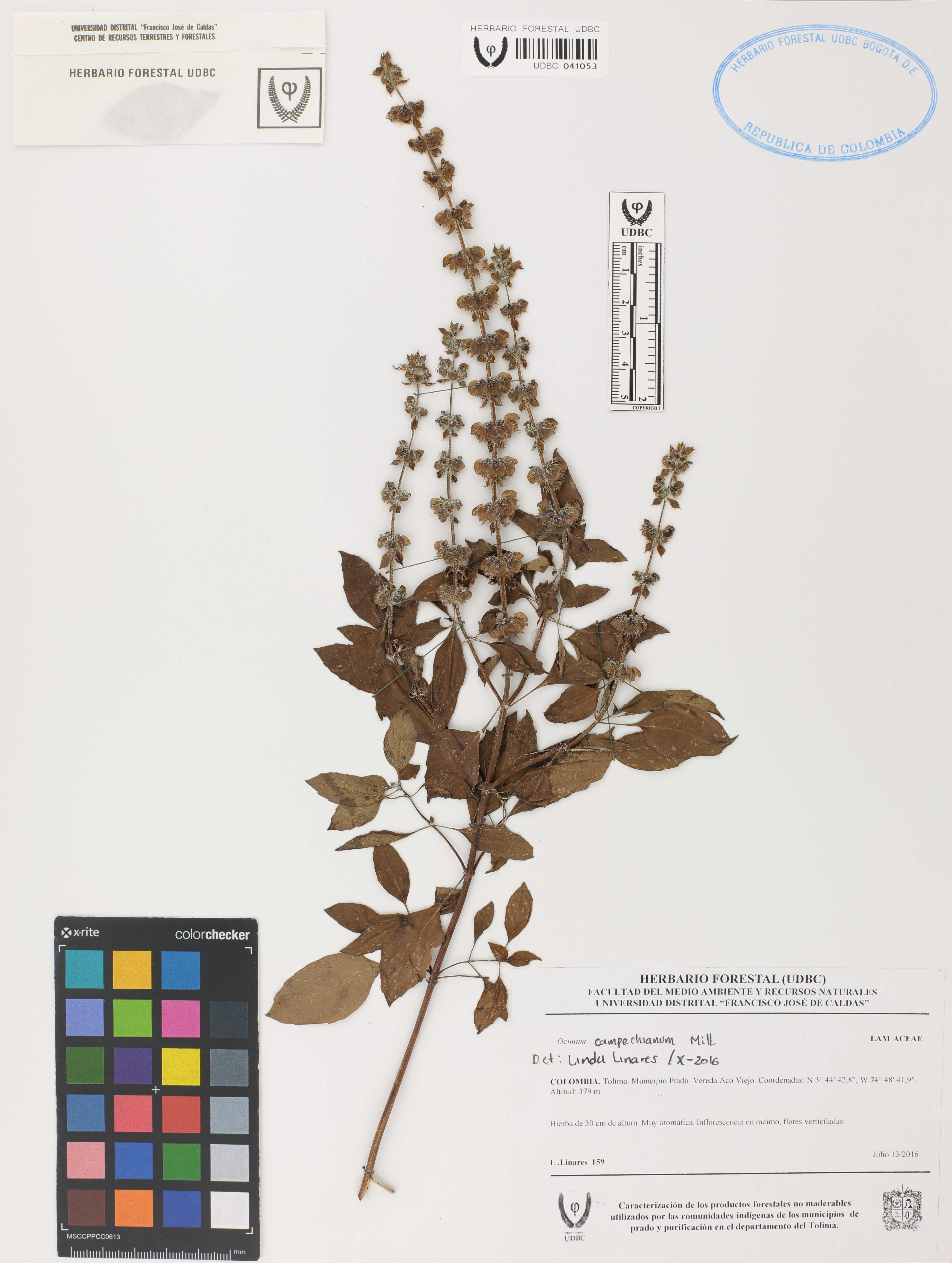 Fotografía del ejemplar Linares, L. 159, determinado como Ocimum campechianum en el año 2016