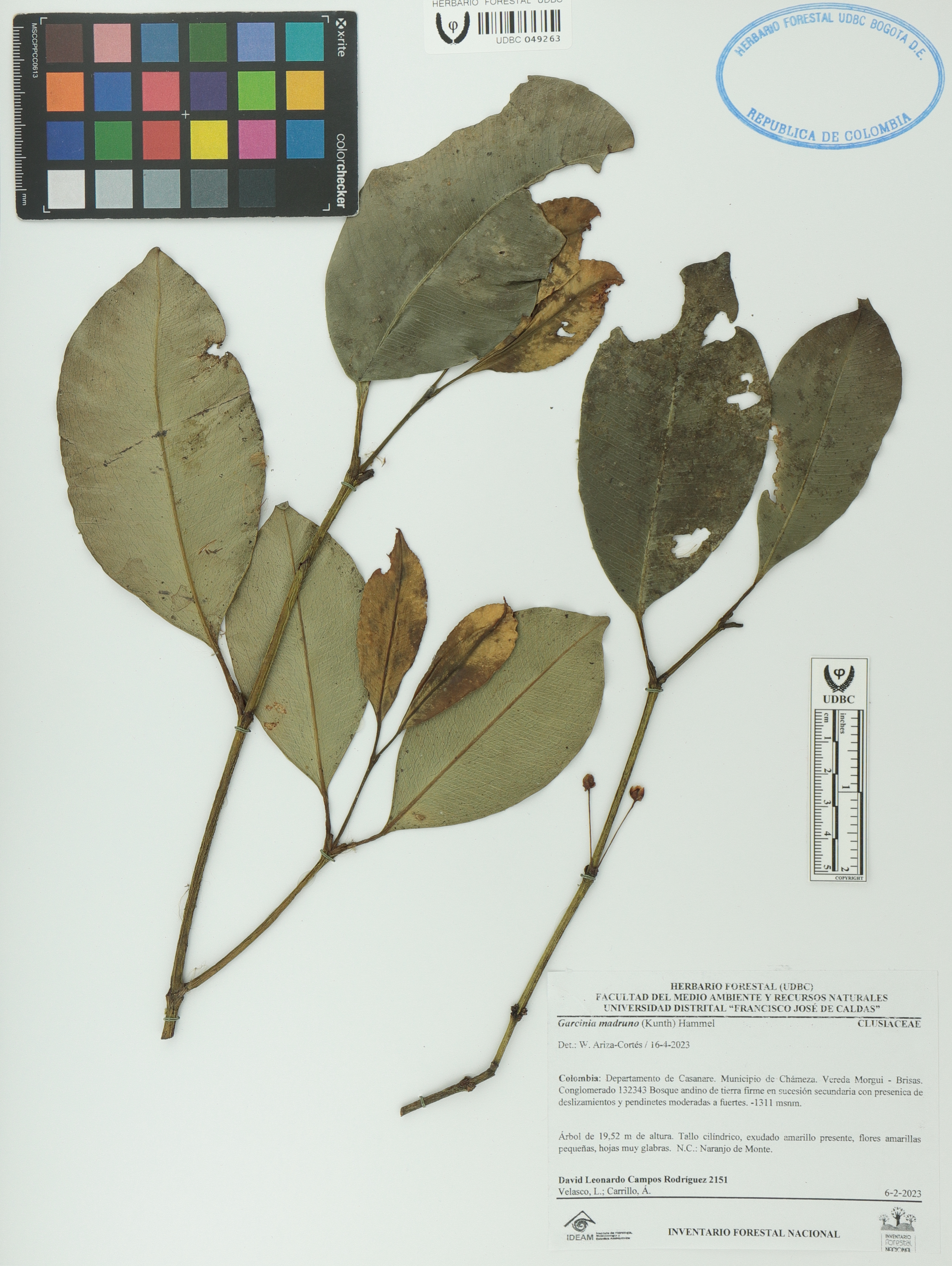 Fotografía del ejemplar Campos-Rodríguez, D. 2151, determinado como Garcinia madruno en el año 2023