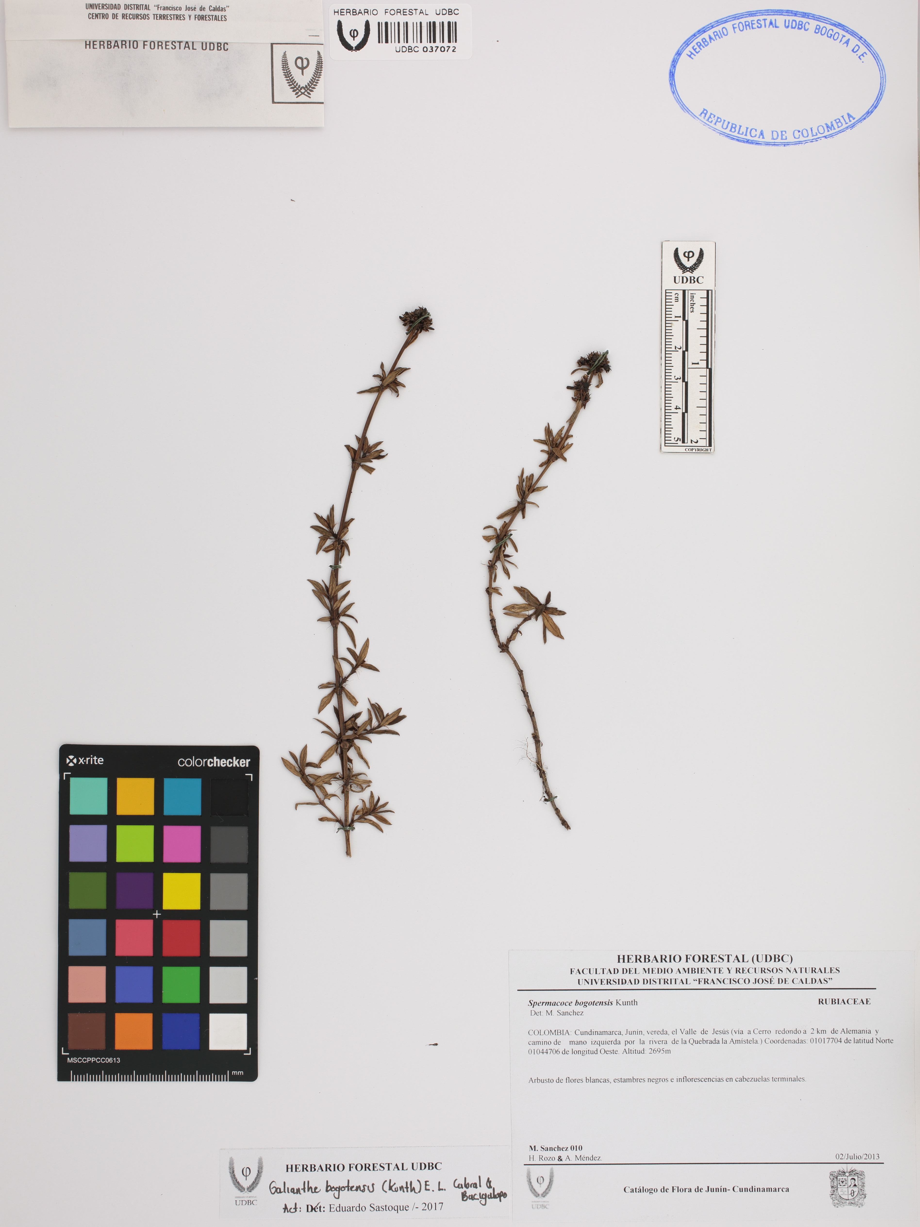 | dc.description | Fotografía del ejemplar Sánchez, M. 10, determinado como Galianthe bogotensis | |