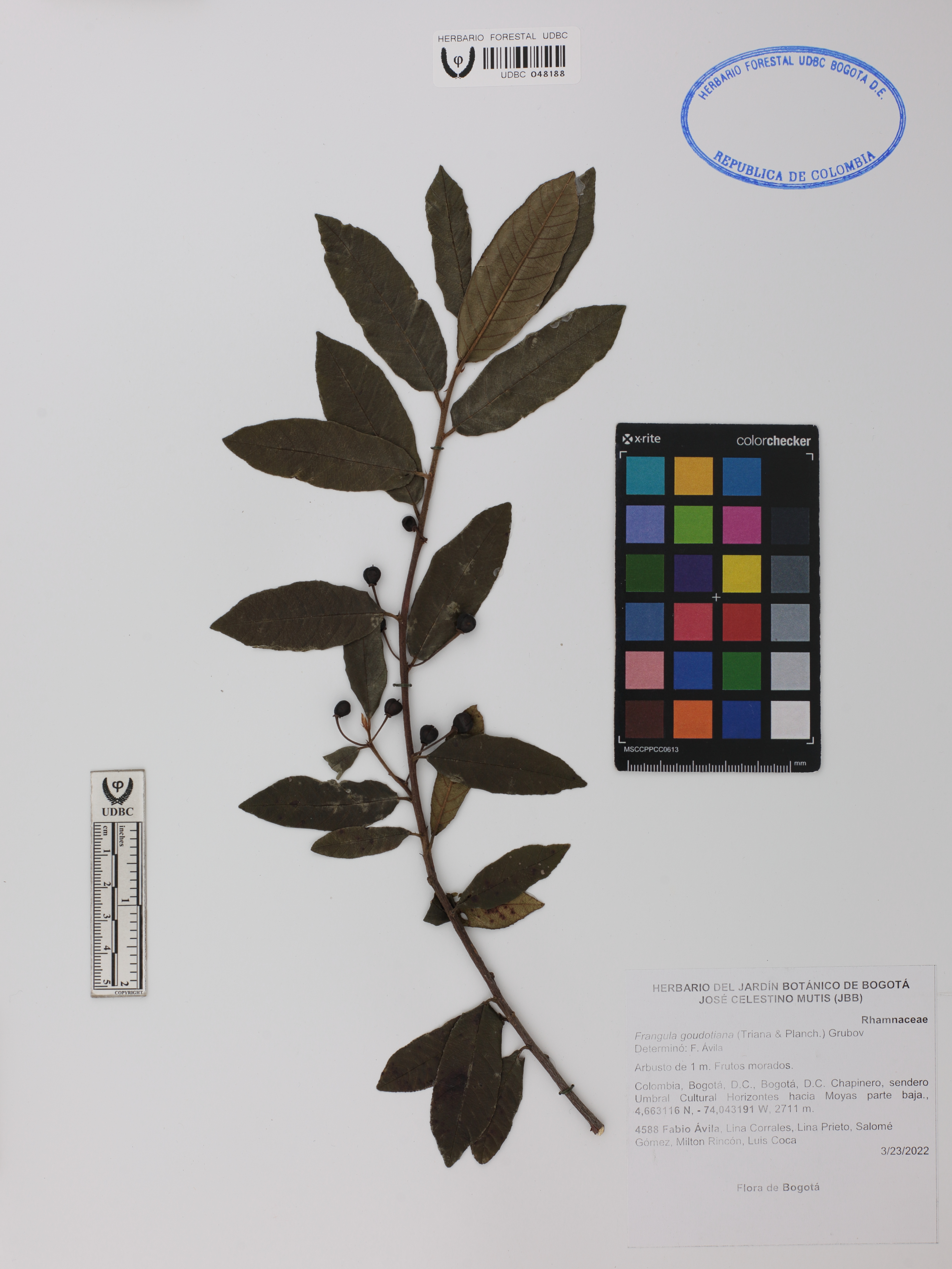 | dc.description | Fotografía del ejemplar Ávila, F. 4588, determinado como Frangula goudotiana en el año 2022 | |