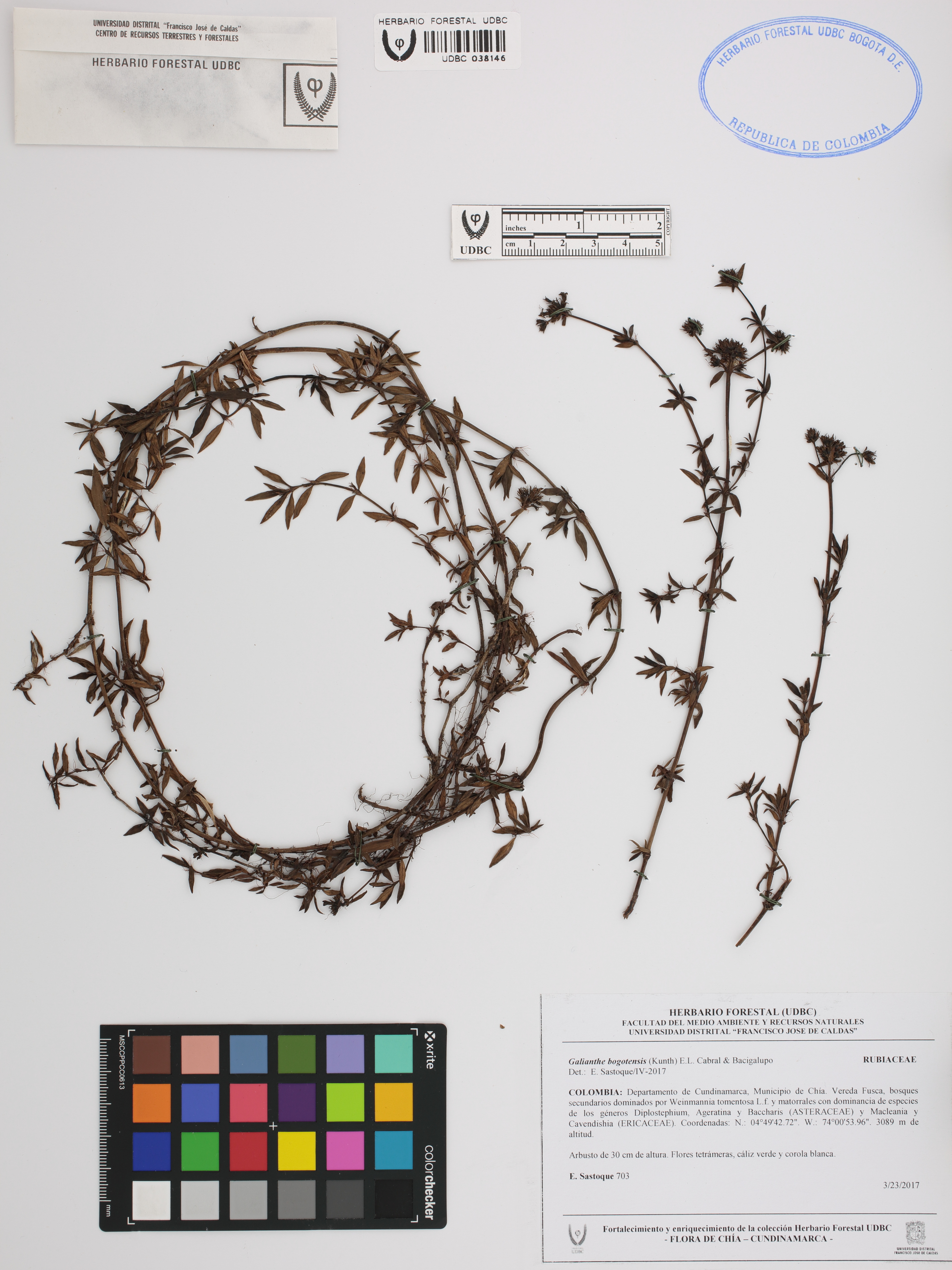 Fotografía del ejemplar Sastoque, E. 703, determinado como Galianthe bogotensis en el año 2017