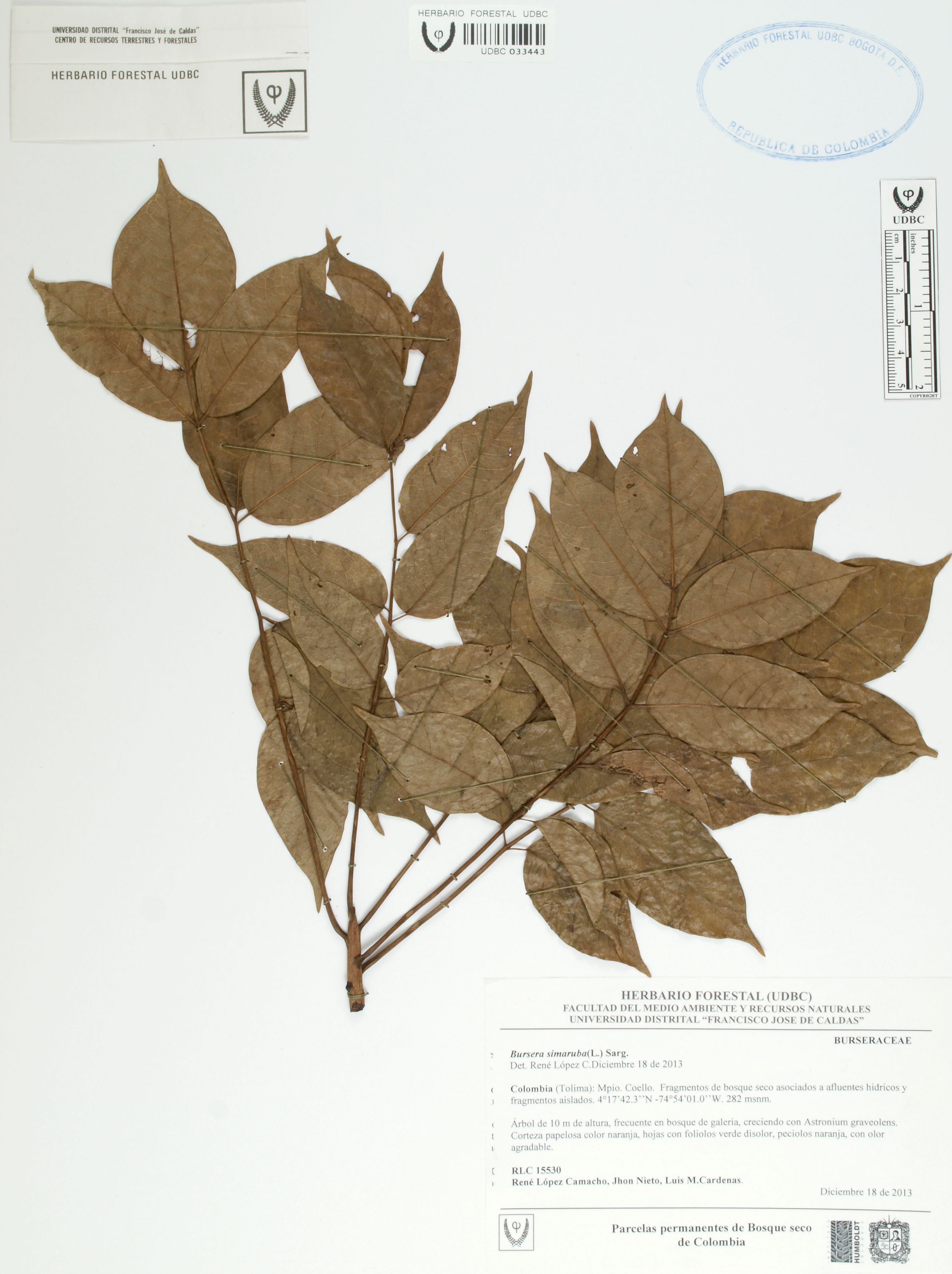 Fotografía del ejemplar López, R. 15530, determinado como Bursera simaruba en el año 2013