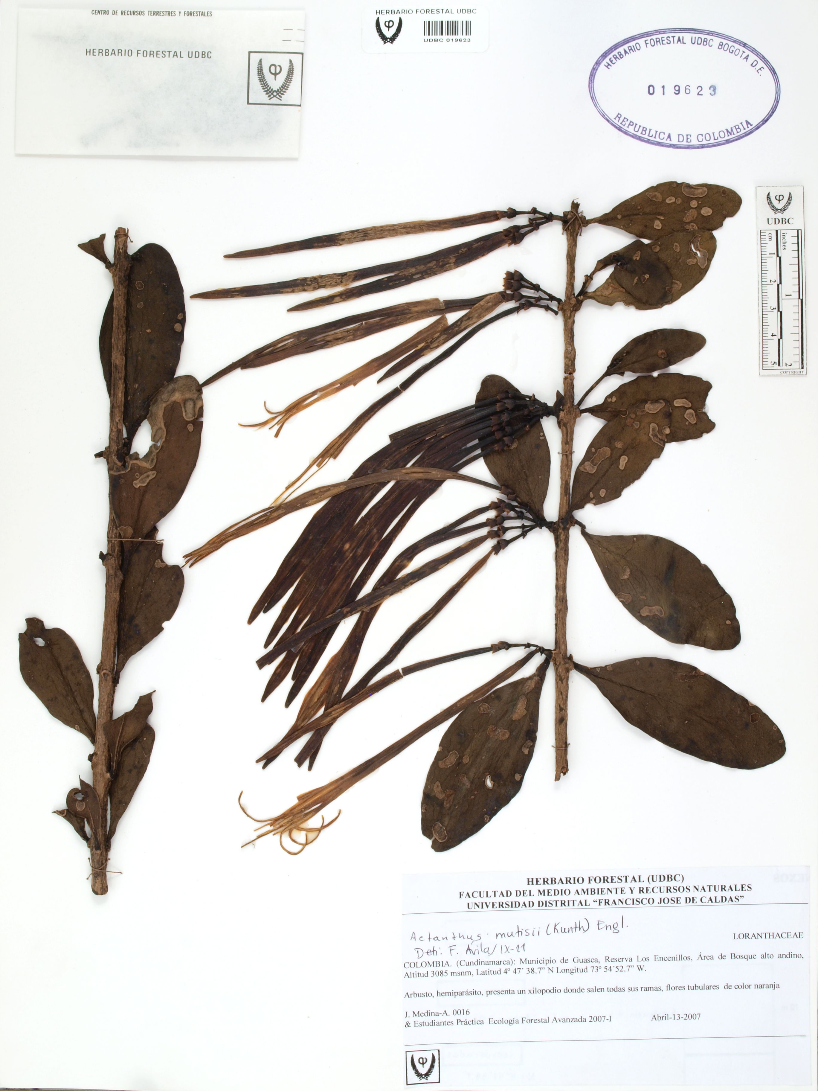 | dc.description | Fotografía del ejemplar Medina, J. 16, determinado como Aetanthus mutisii en el año 2011 | |