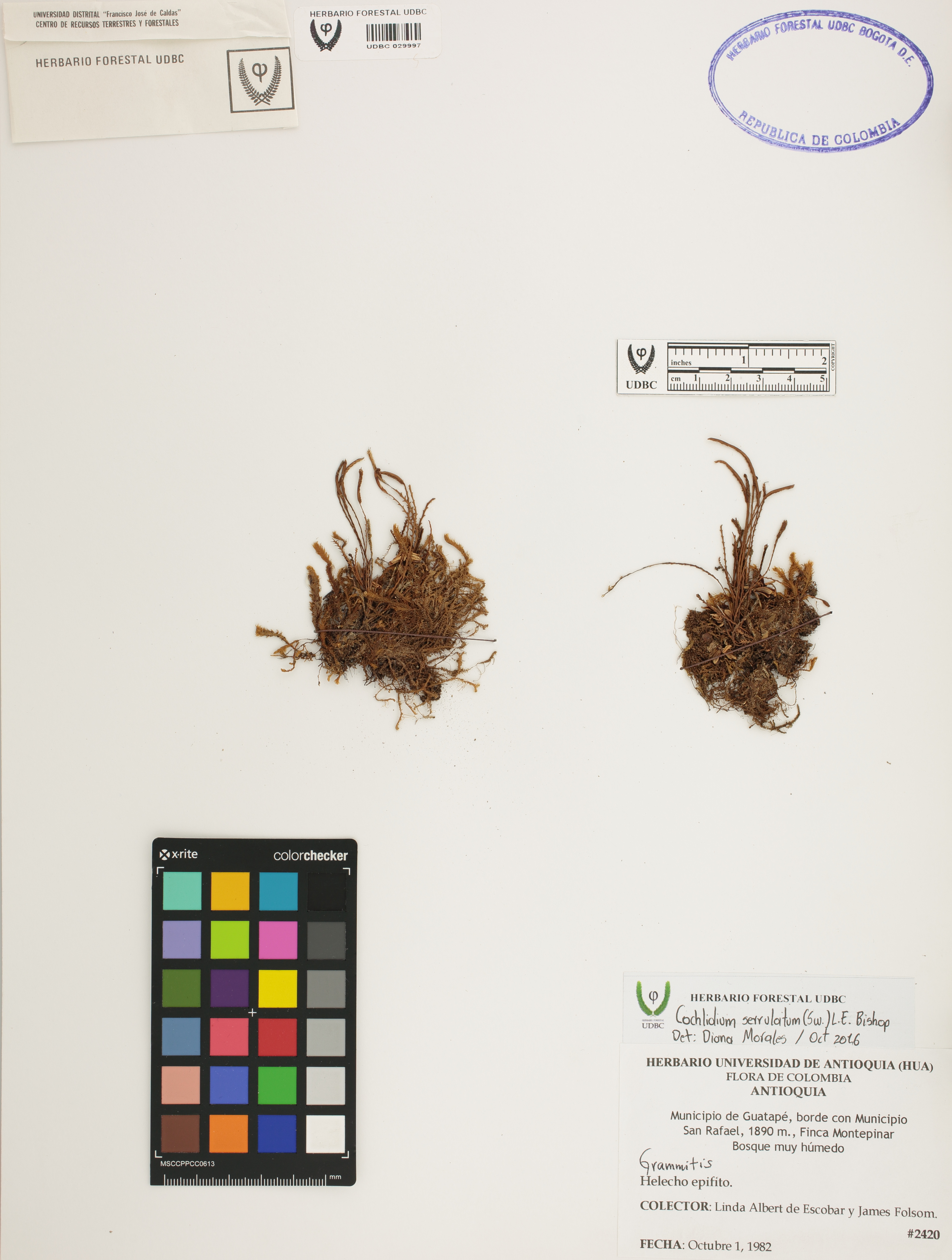 Fotografía del ejemplar Albert de E., L. 2420, determinado como Cochlidium serrulatum en el año 2016