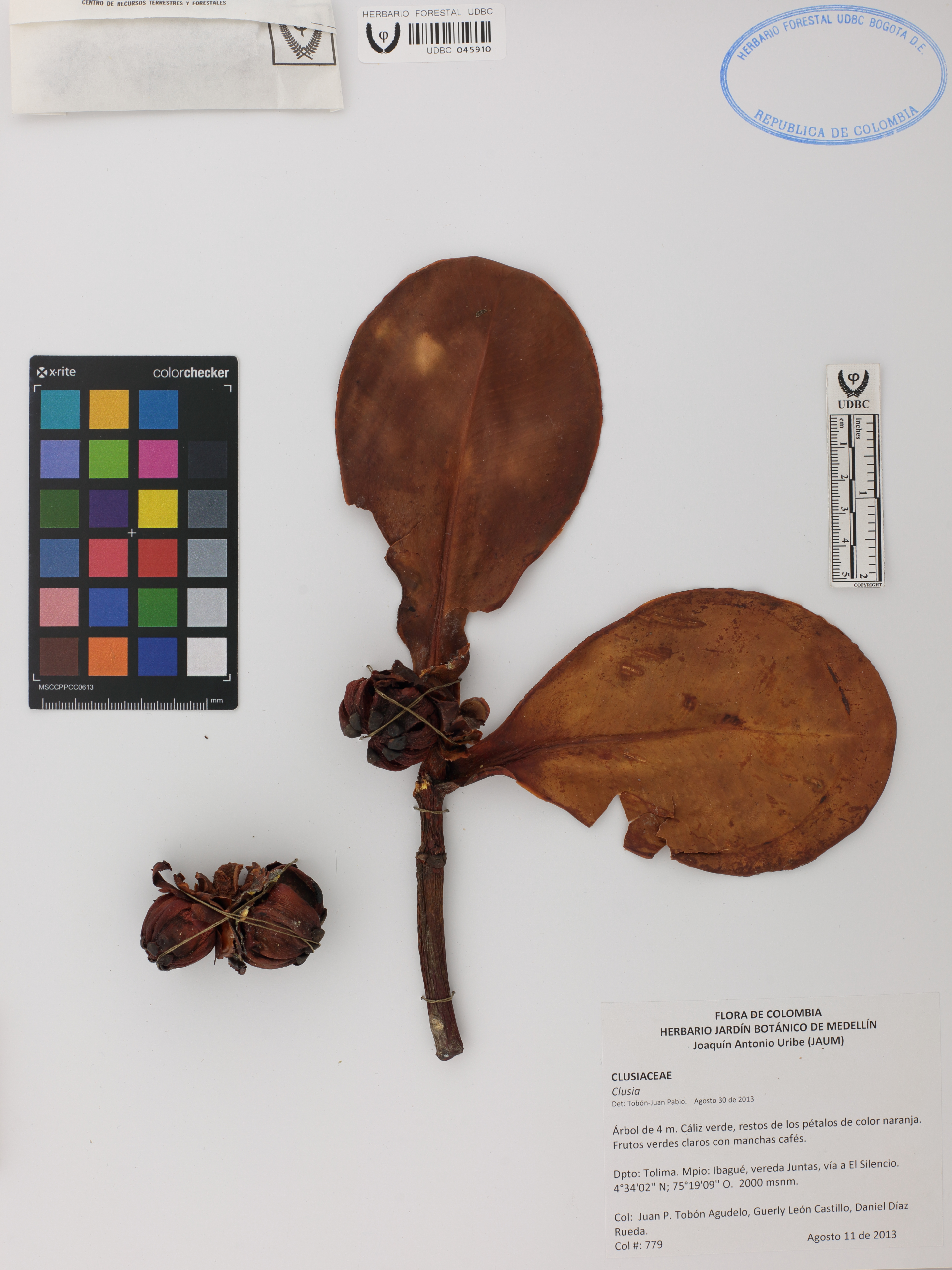 Fotografía del ejemplar Tobón-Agudelo, J. 779, determinado como Clusia sp. en el año 2013