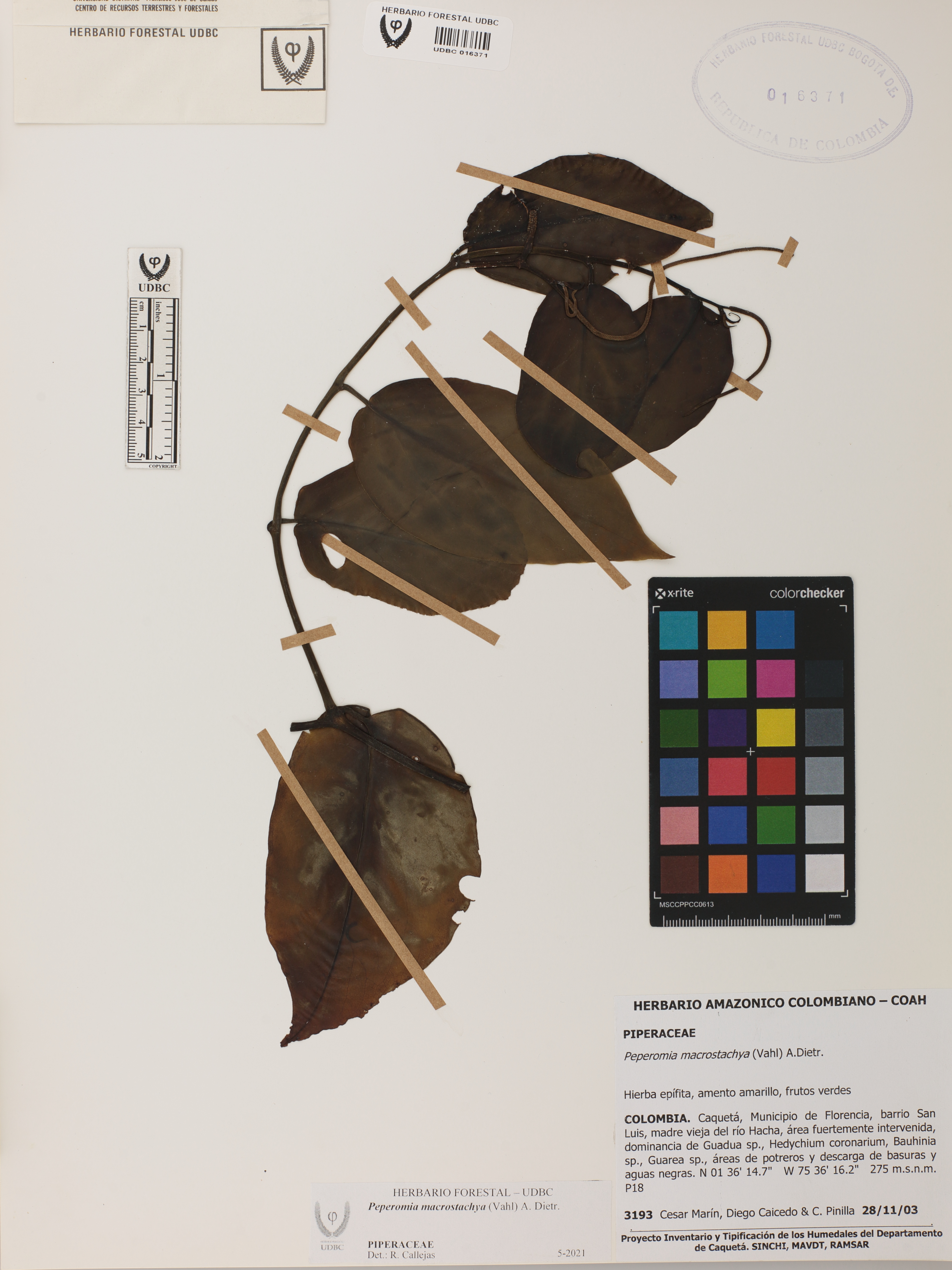 Fotografía del ejemplar Marín, C. 3193, determinado como Peperomia macrostachyos en el año 2021