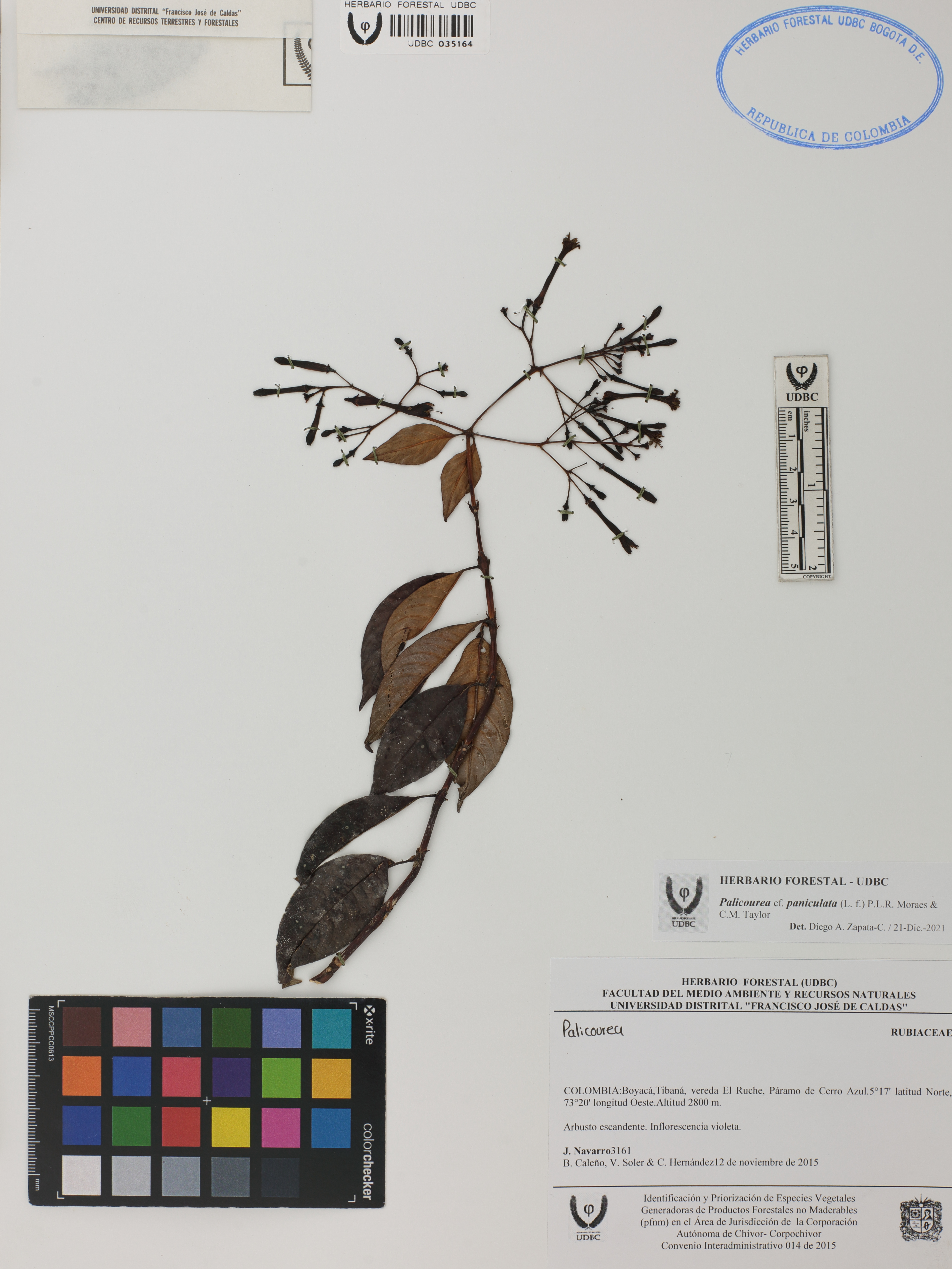 Fotografía del ejemplar Navarro, J. 3161, determinado como Palicourea paniculata en el año 2021