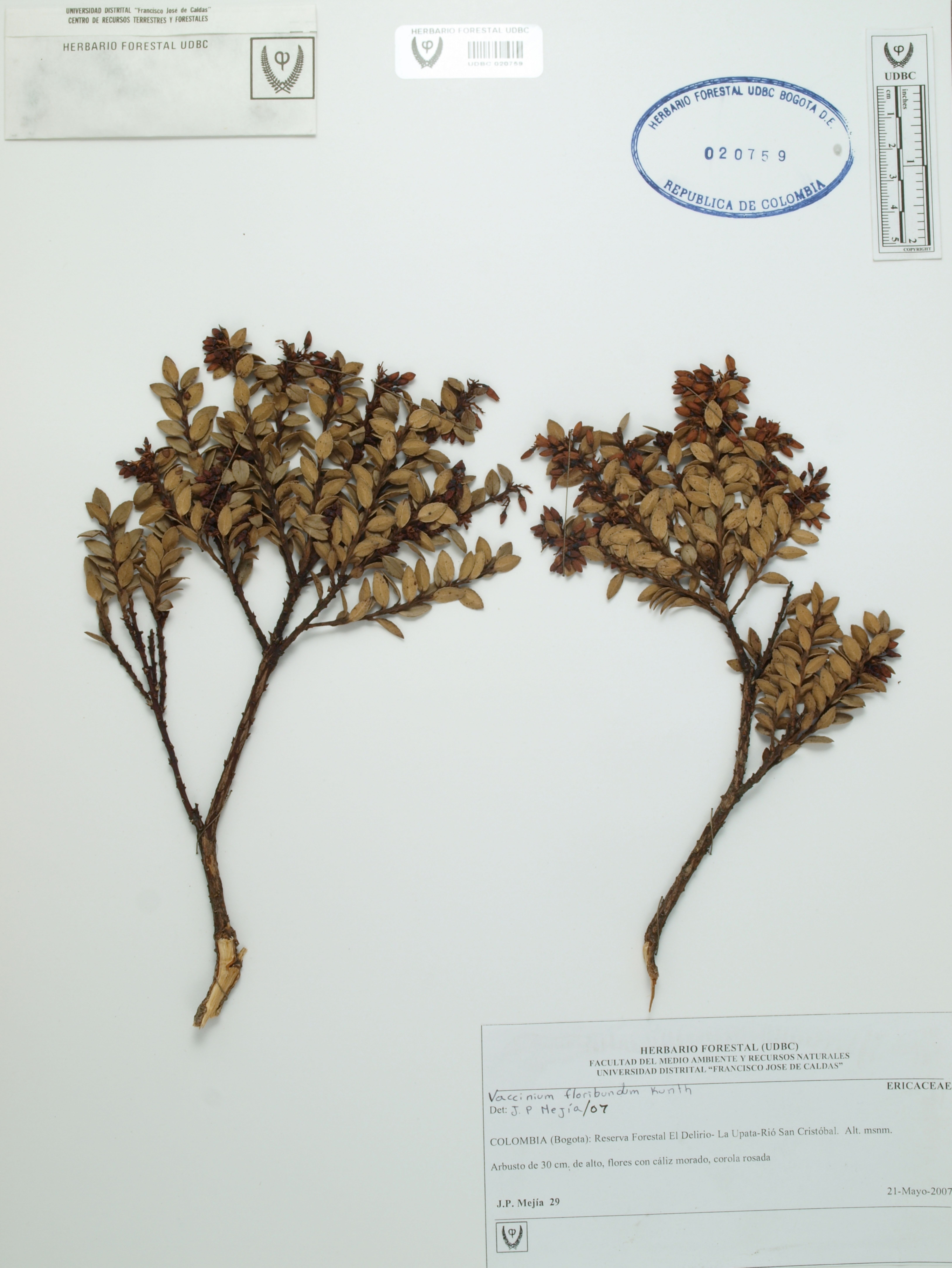 Fotografía del ejemplar Mejía, J. 29, determinado como Vaccinium floribundum