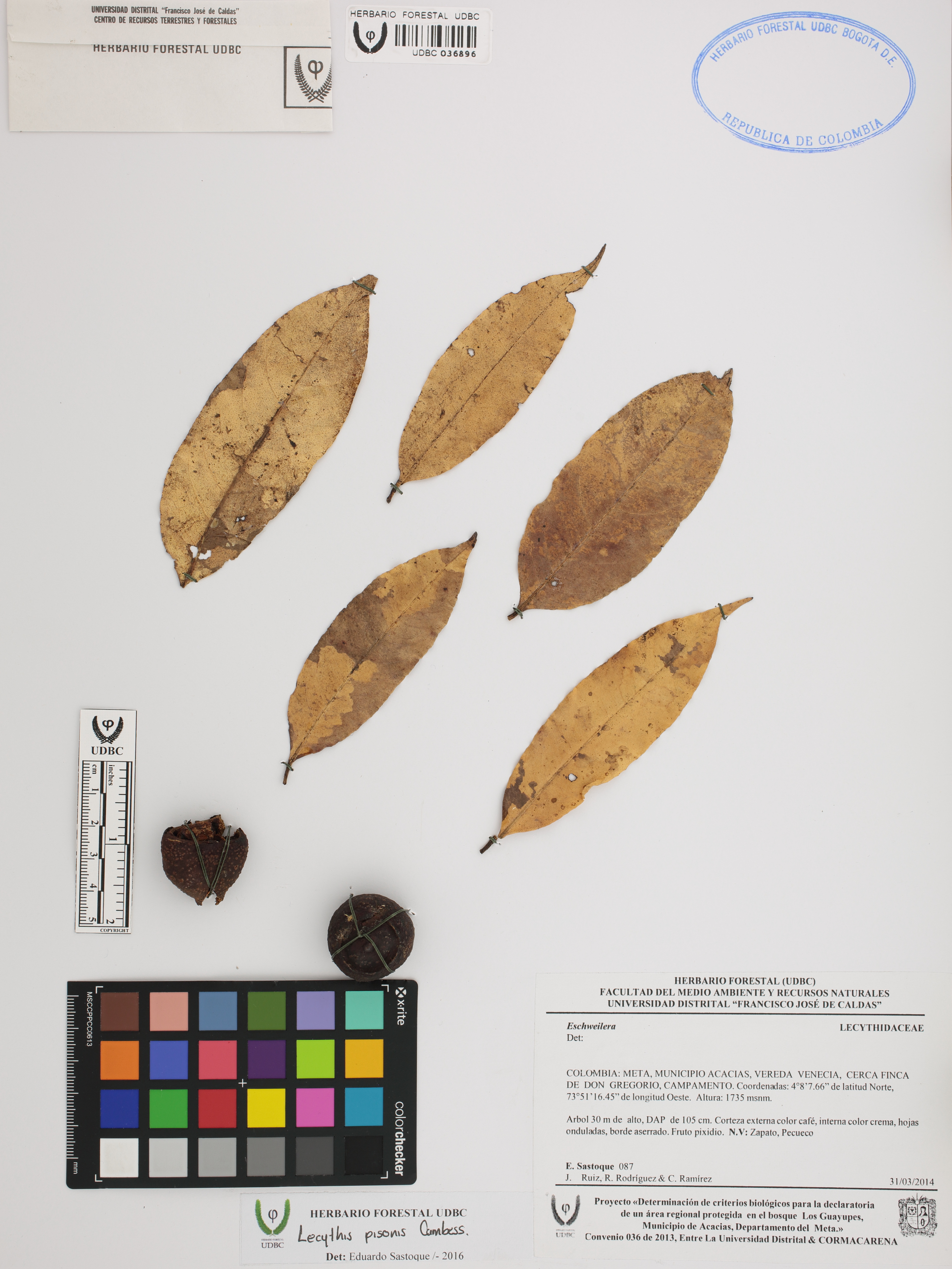 Fotografía del ejemplar Sastoque, E. 87, determinado como Lecythis pisonis en el año 2016