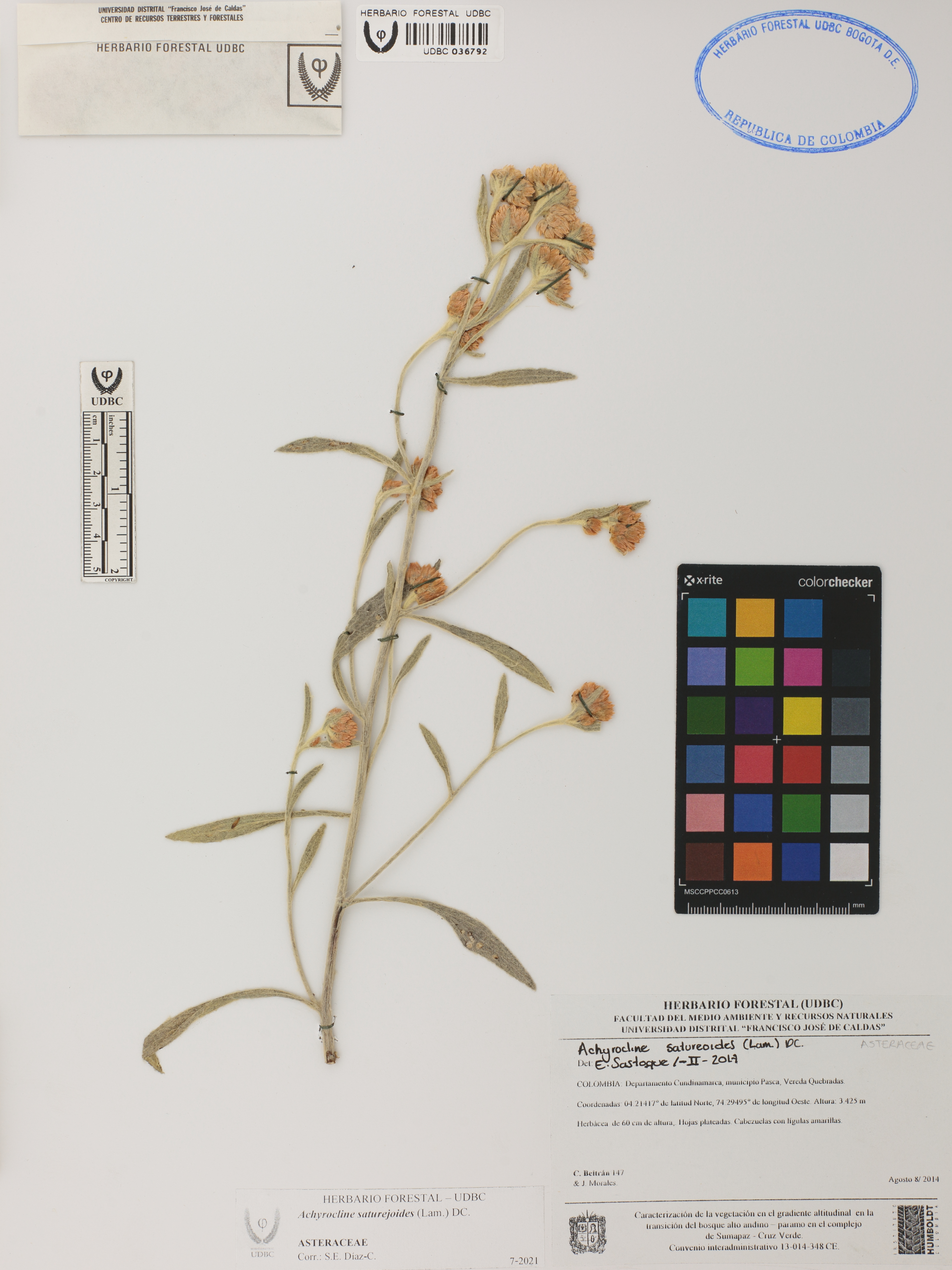Fotografía del ejemplar Beltrán, C. 147, determinado como Achyrocline saturejoides en el año 2017