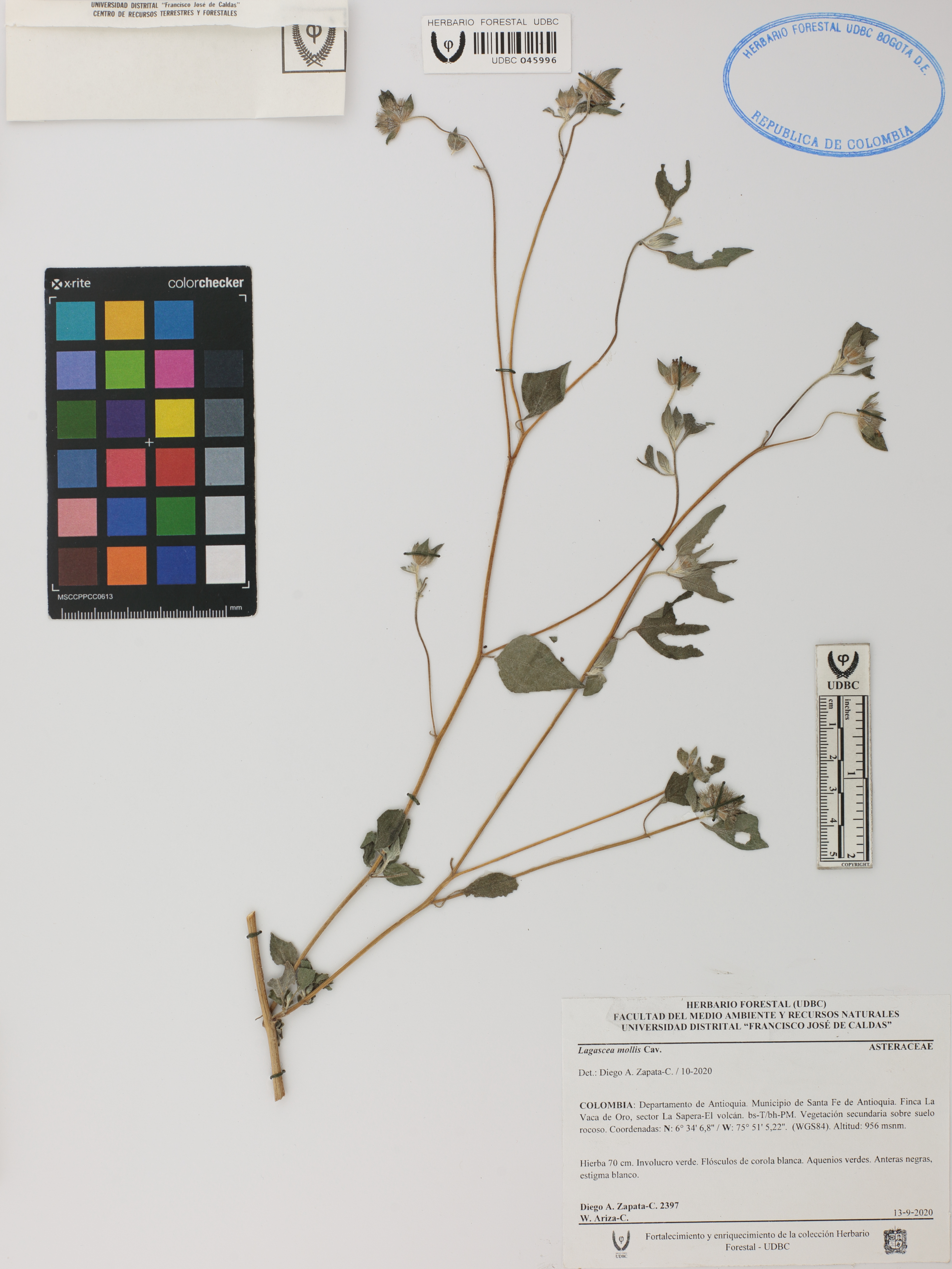 Fotografía del ejemplar Zapata-C., D. 2397, determinado como Lagascea mollis en el año 2020