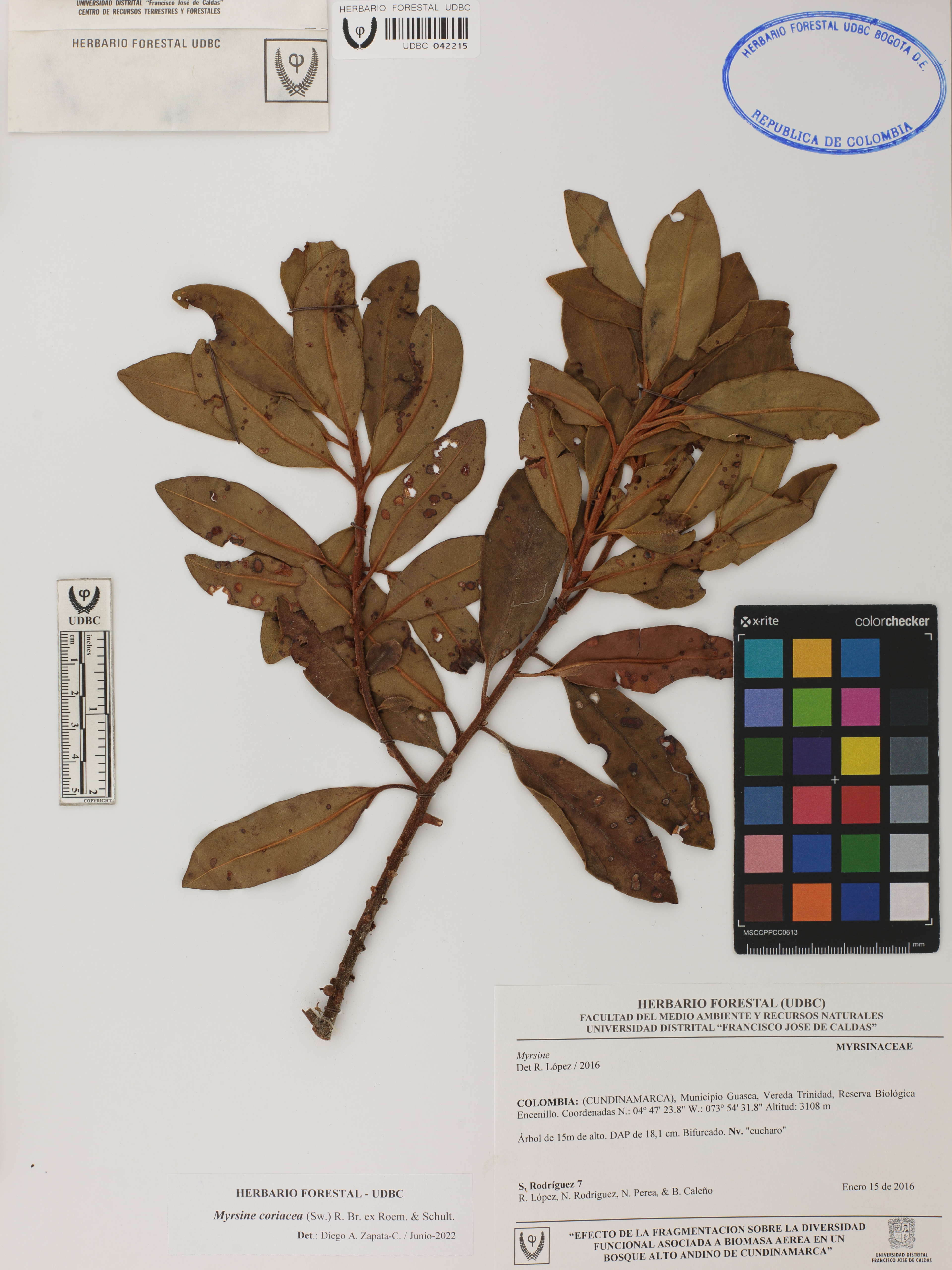 | dc.description | Fotografía del ejemplar Rodríguez, S. 7, determinado como Myrsine coriacea en el año 2022 | |