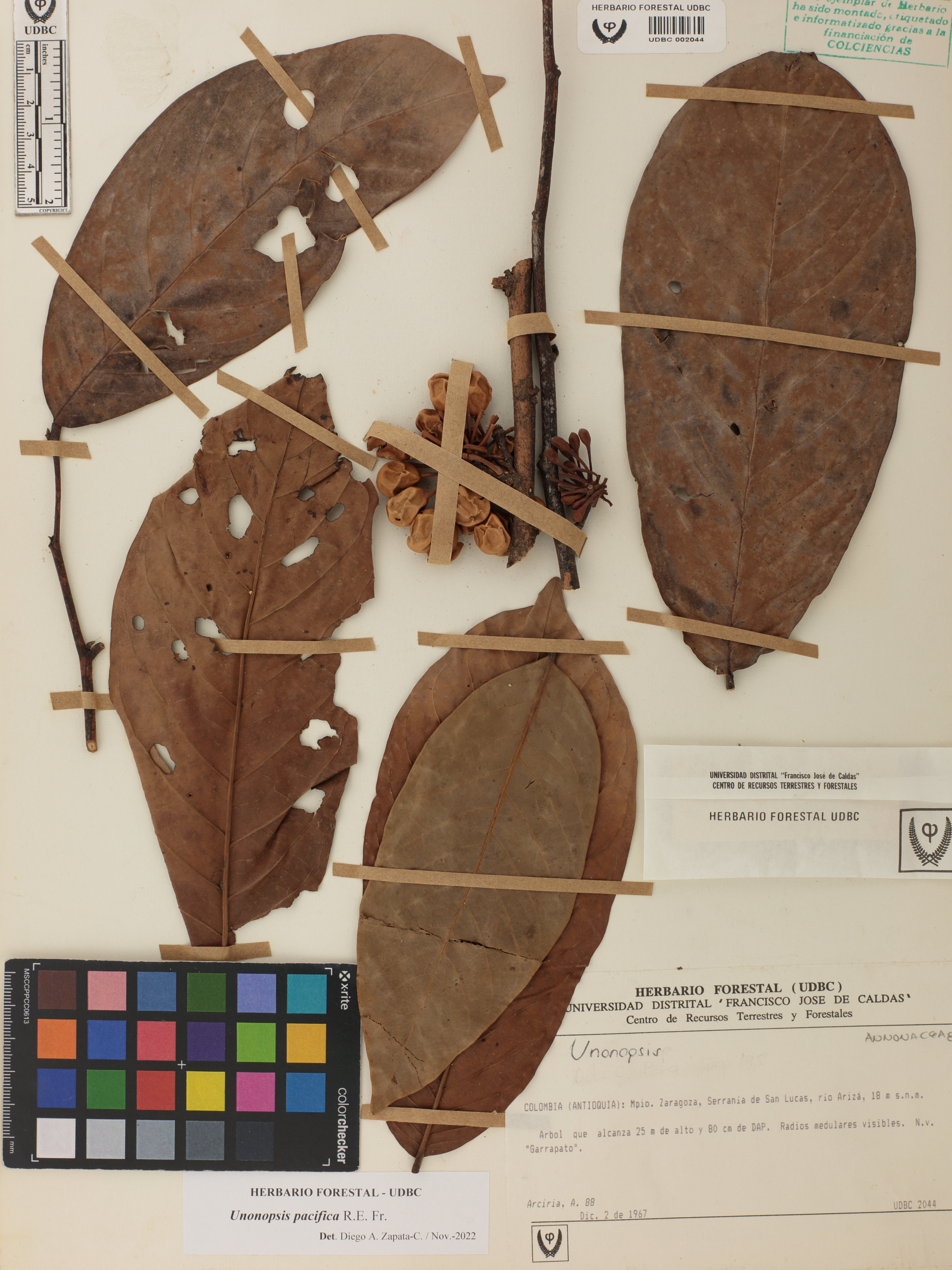 Fotografía del ejemplar Arciria, A. 88, determinado como Unonopsis pacifica en el año 2022
