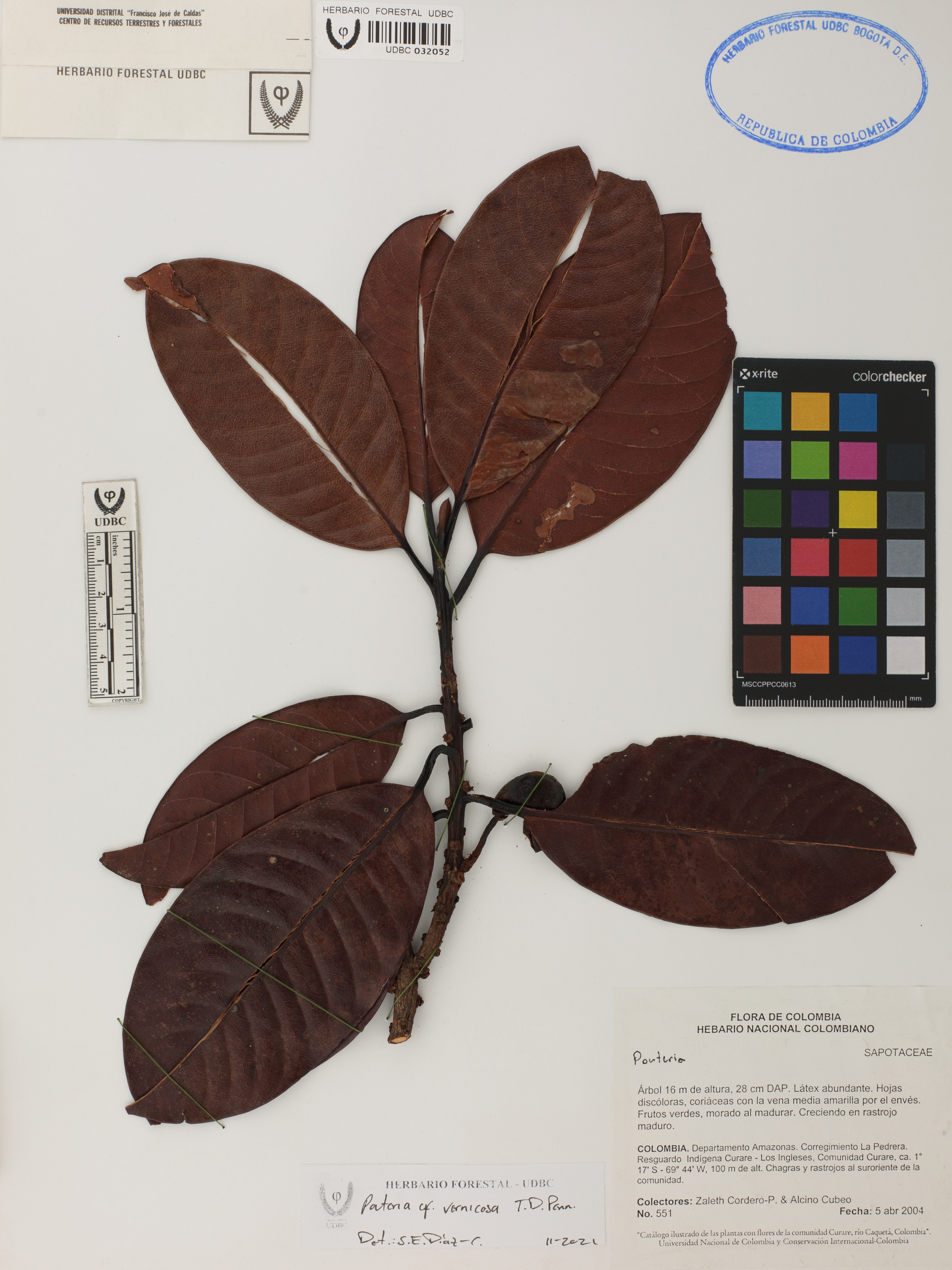 Fotografía del ejemplar Cordero-P., Z. 551, determinado como Pouteria vernicosa en el año 2021