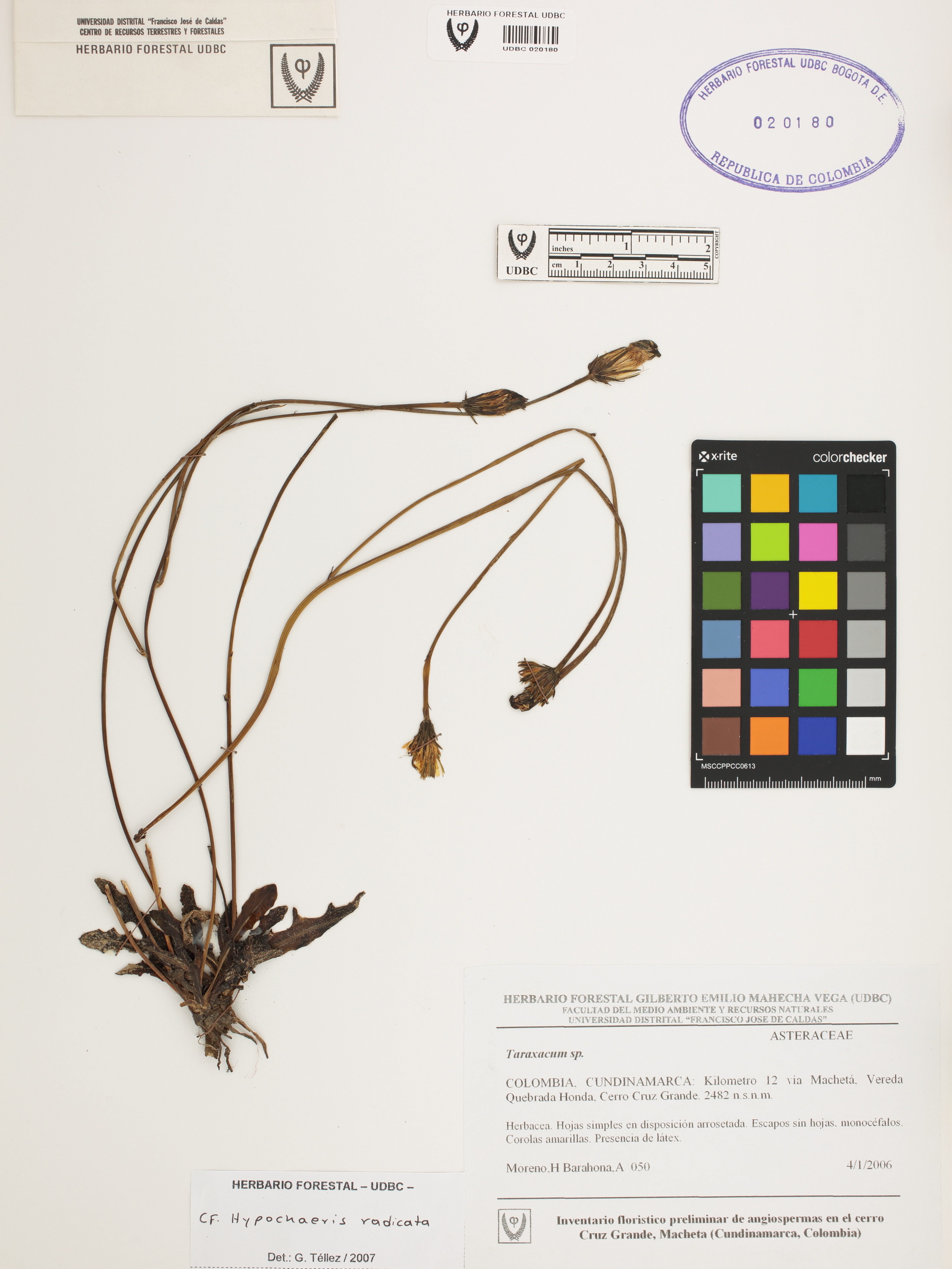 | dc.description | Fotografía del ejemplar Moreno, H. 50, determinado como Hypochaeris radicata en el año 2007 | |