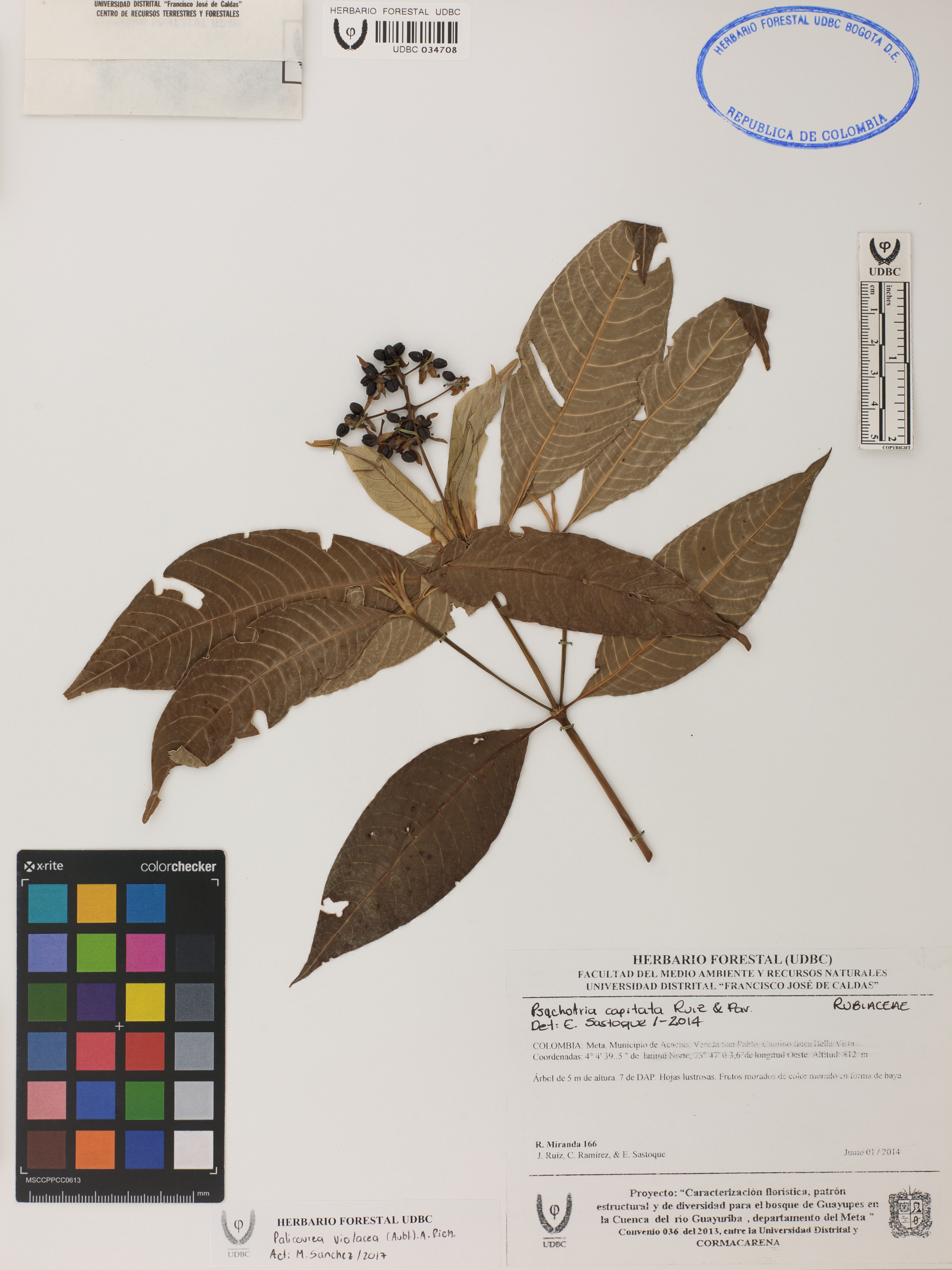 | dc.description | Fotografía del ejemplar Miranda, R. 166, determinado como Palicourea violacea en el año 2014 | |