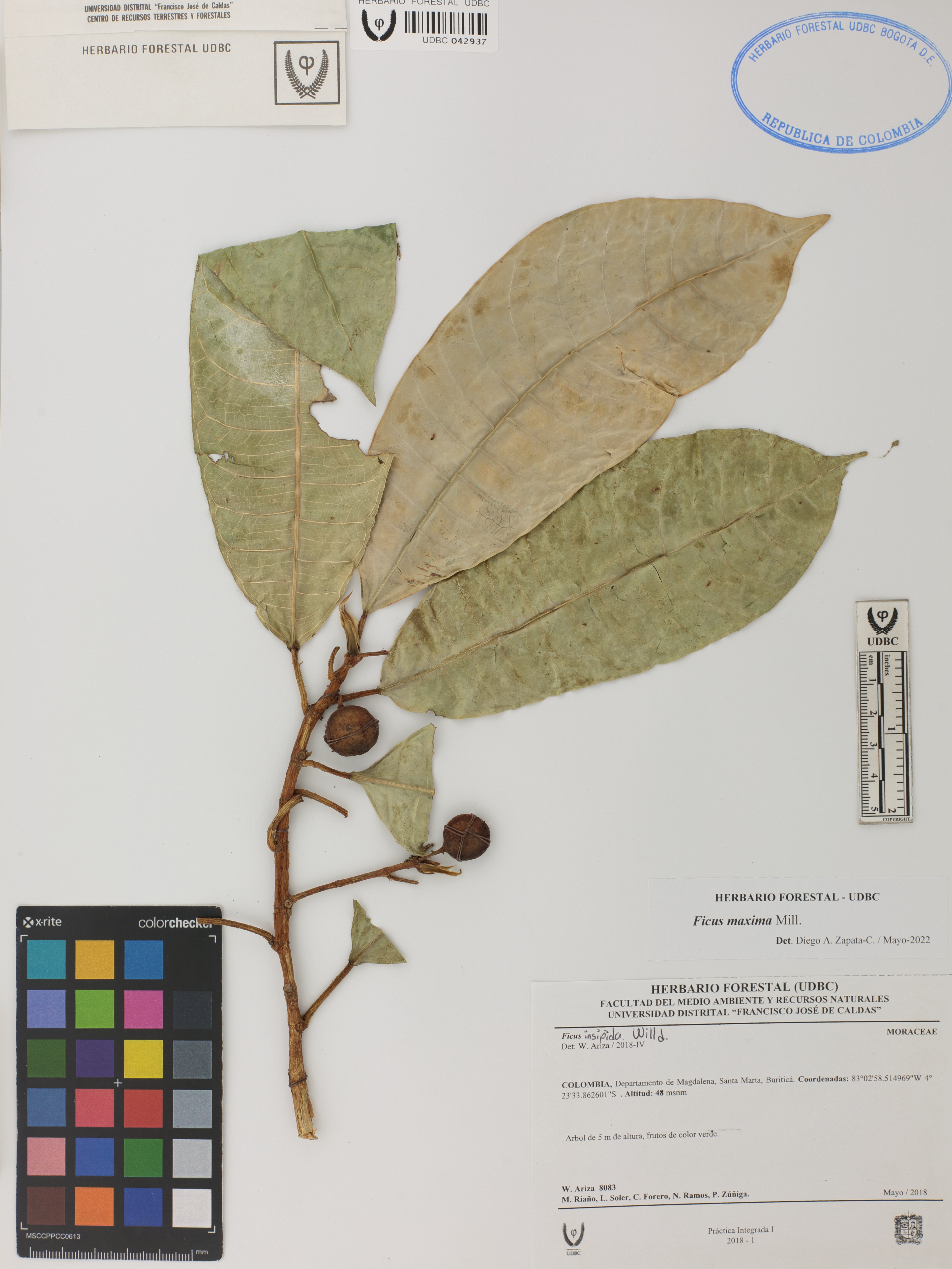 Fotografía del ejemplar Ariza, W. 8083, determinado como Ficus maxima en el año 2022