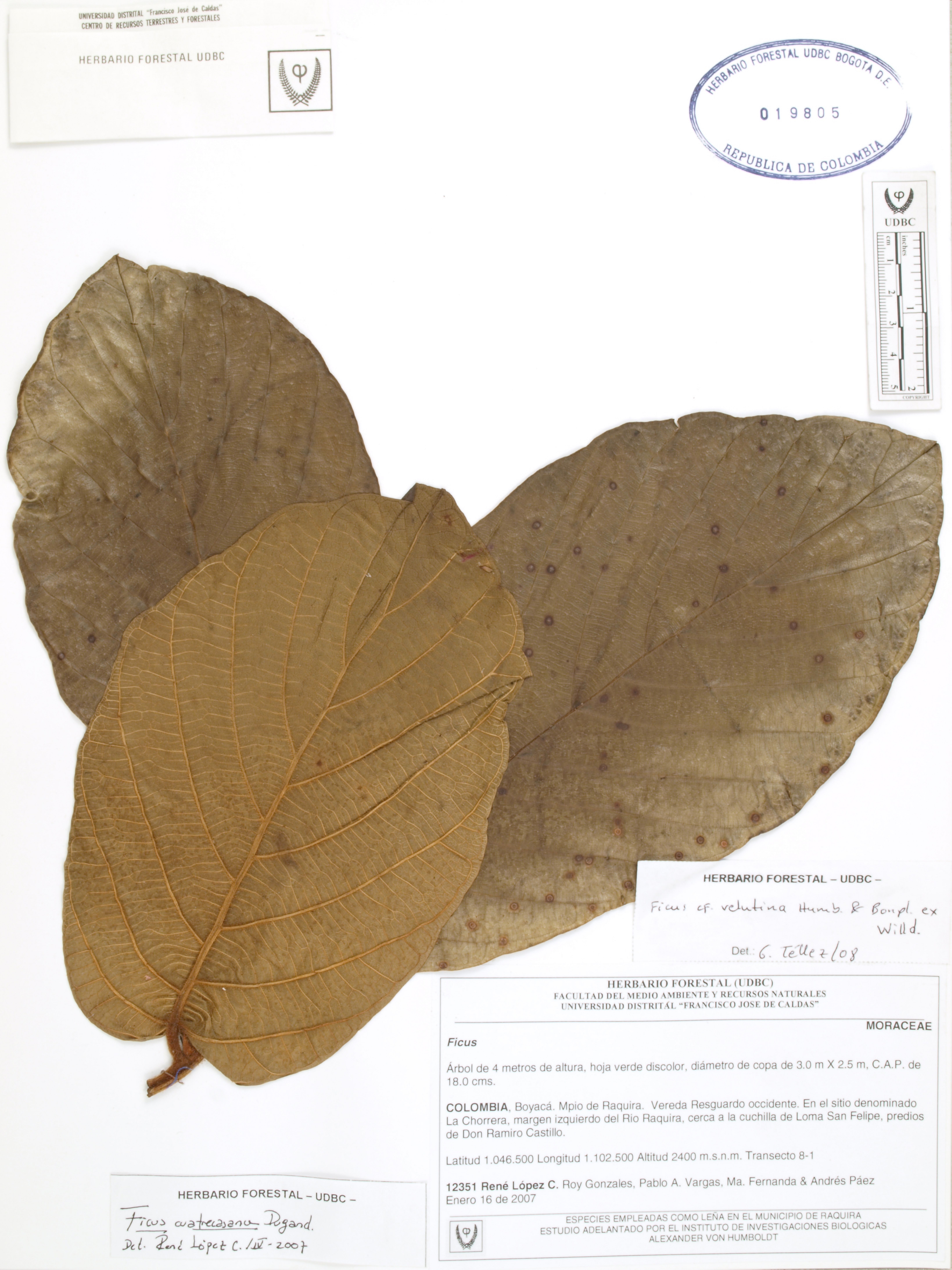 Fotografía del ejemplar López, R. 12351, determinado como Ficus velutina en el año 2008