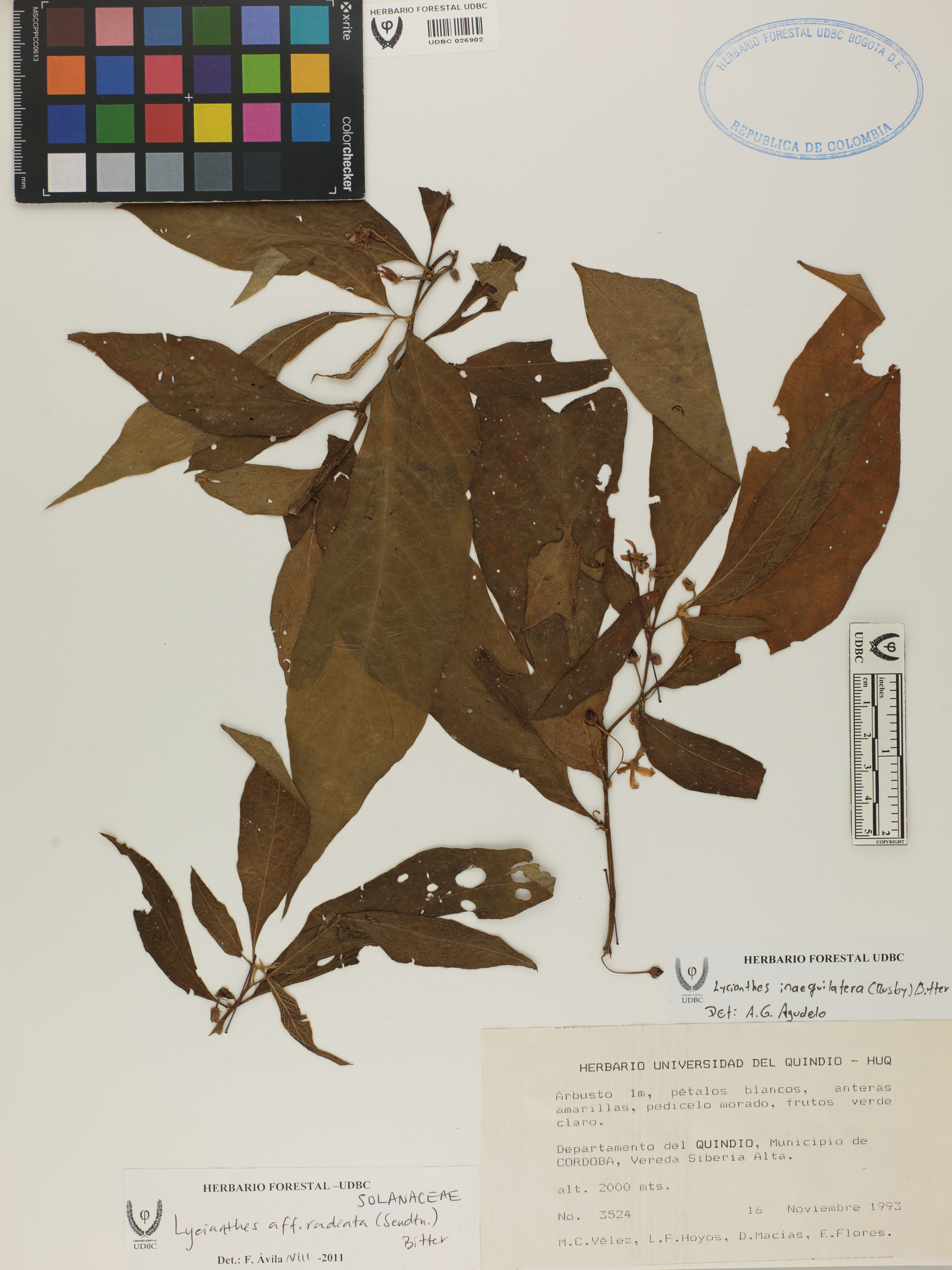 Fotografía del ejemplar Vélez, M. 3524, determinado como Lycianthes inaequilatera
