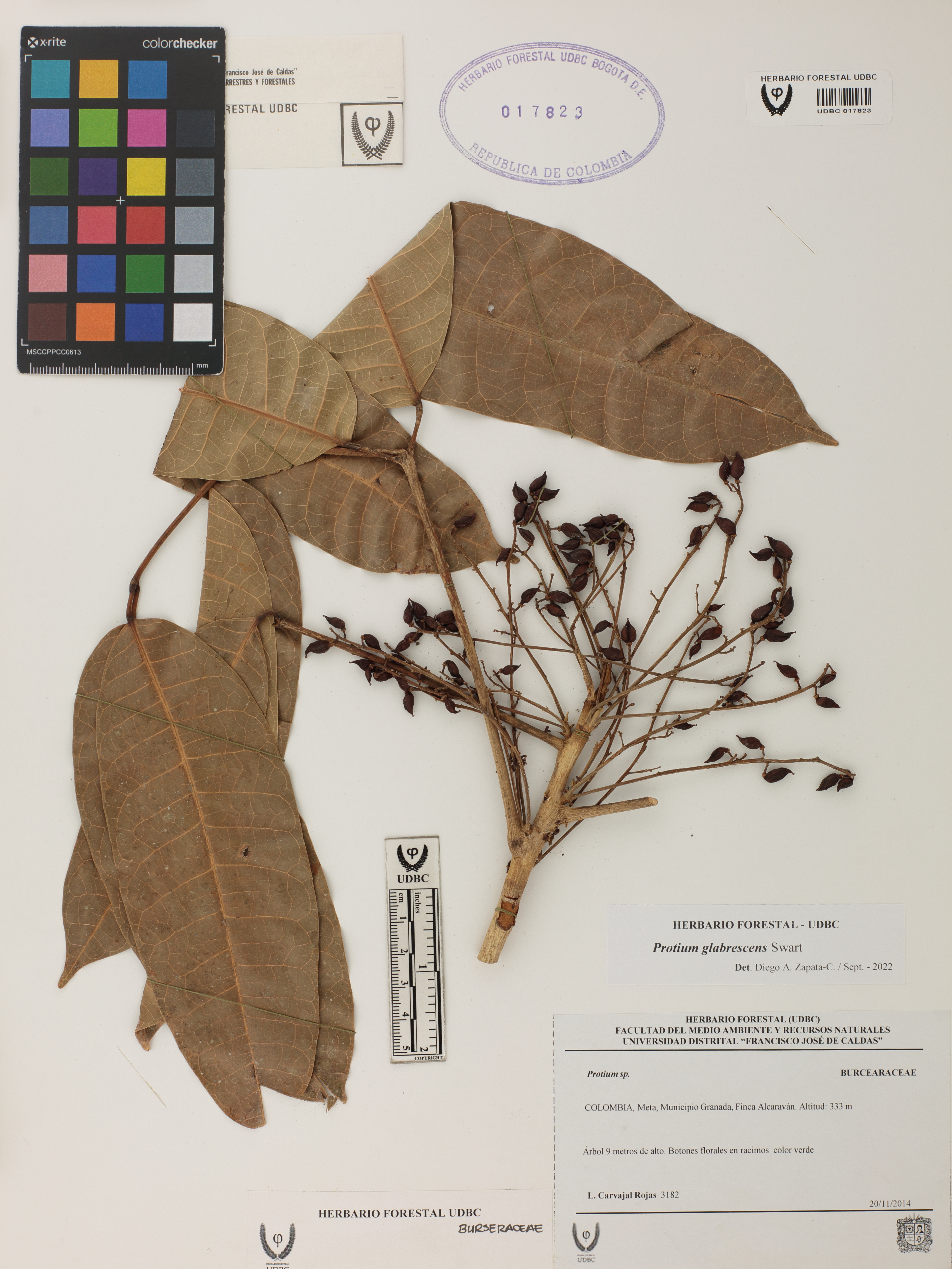 | dc.description | Fotografía del ejemplar Carvajal, L. 3182, determinado como Protium glabrescens en el año 2022 | |