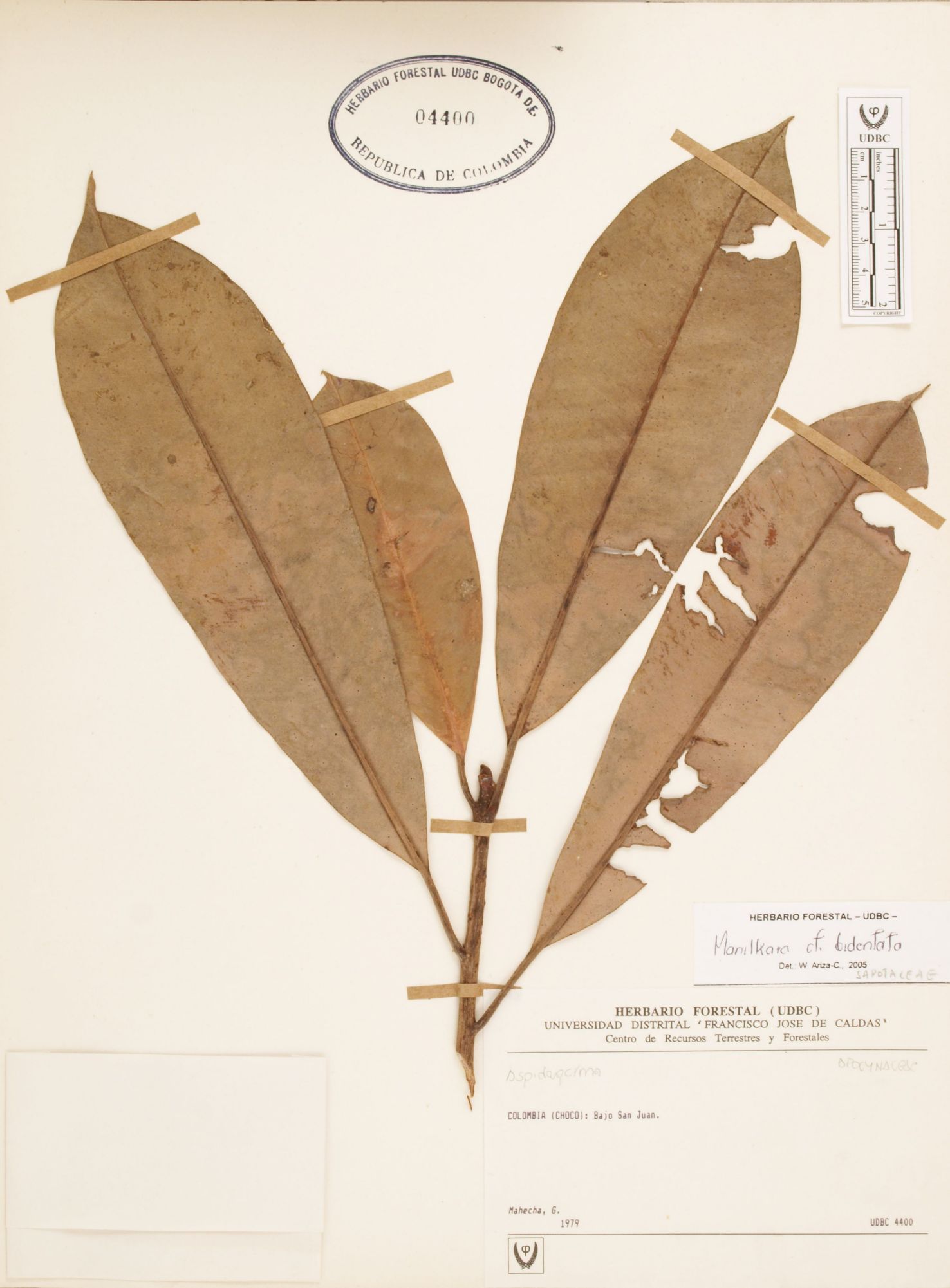 Fotografía del ejemplar Mahecha, G., determinado como Manilkara bidentata en el año 2005