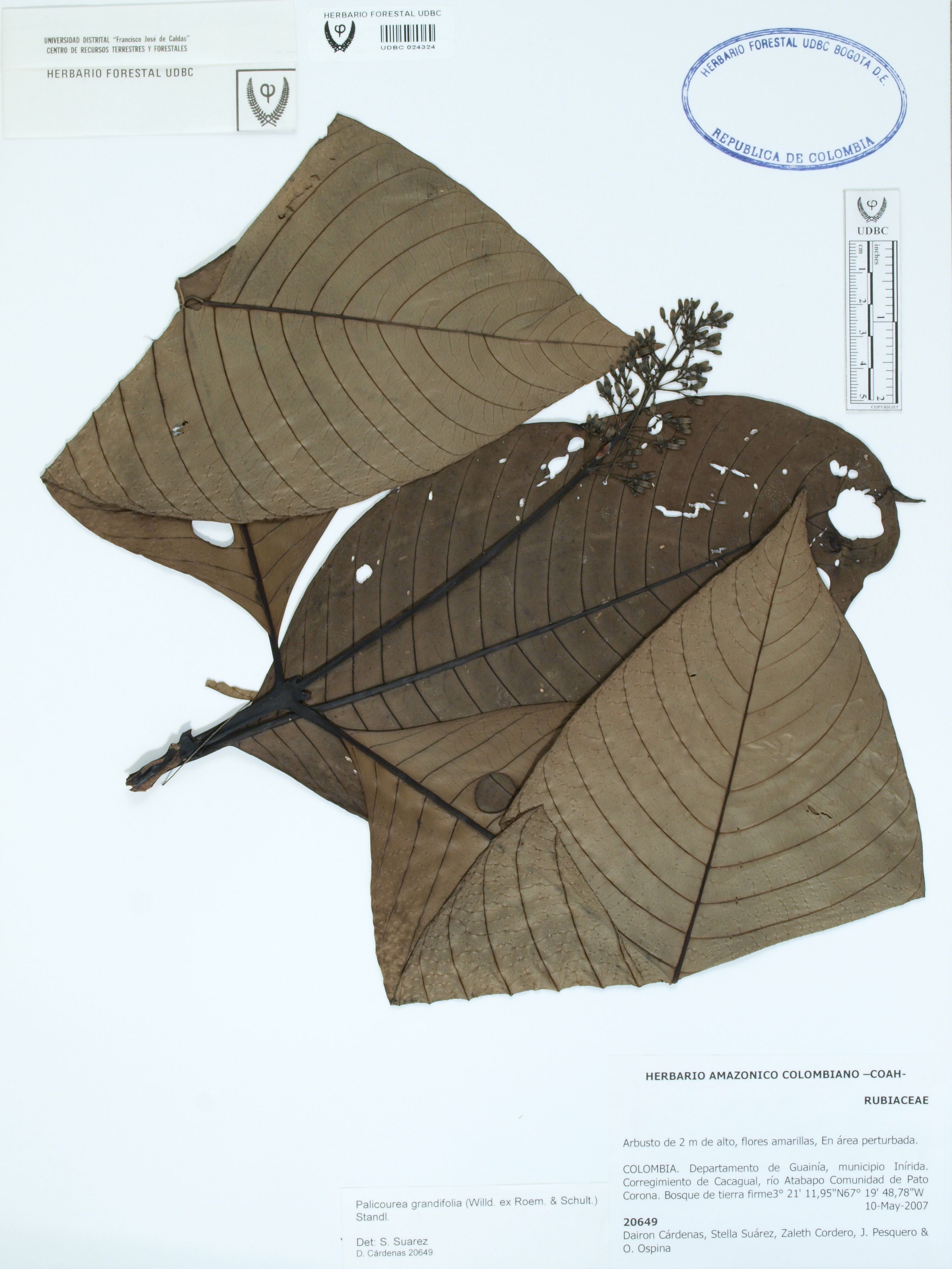 Fotografía del ejemplar Cárdenas, P. 20649, determinado como Palicourea grandifolia