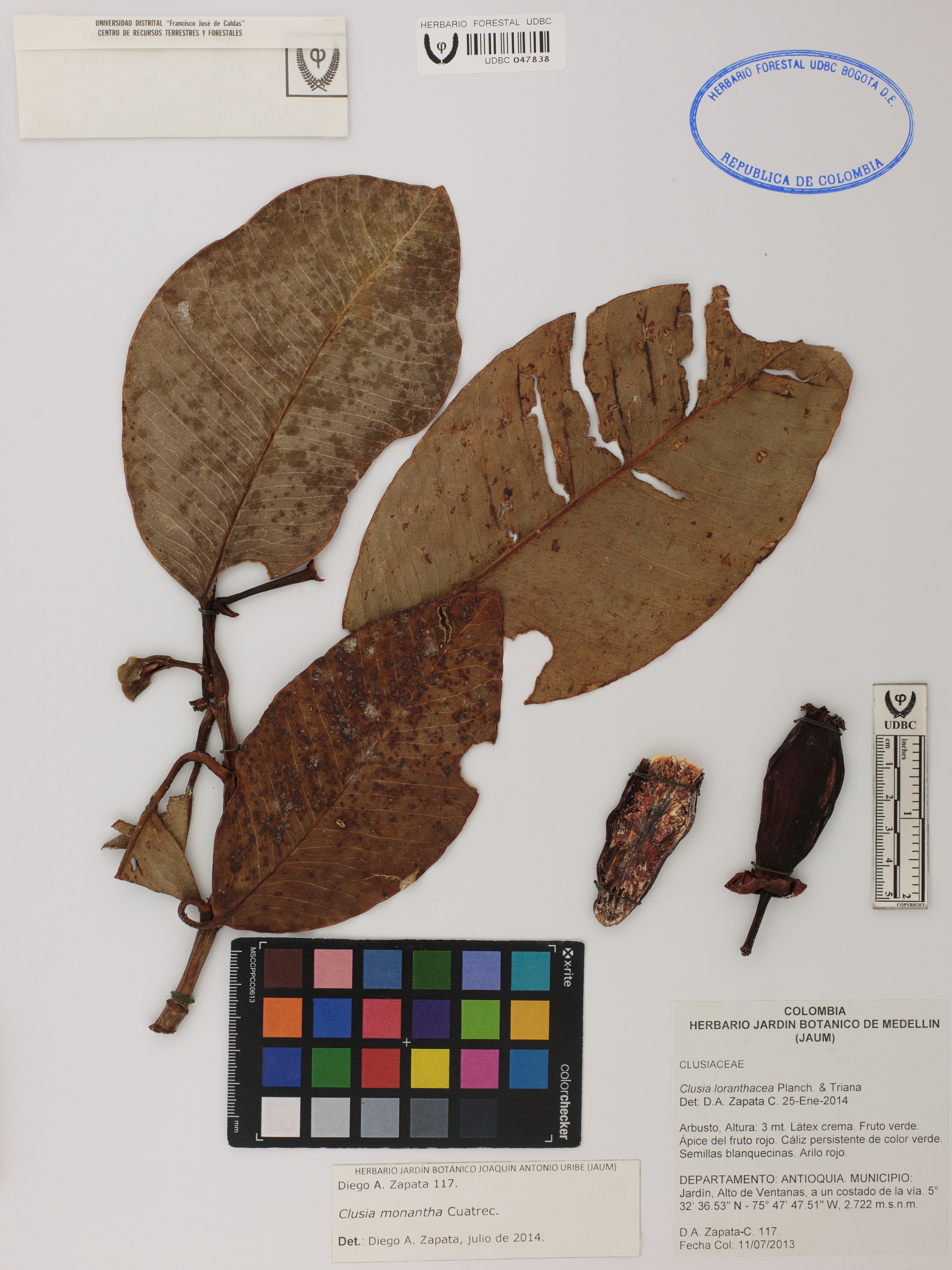 | dc.description | Fotografía del ejemplar Zapata-C., D. 117, determinado como Clusia monantha en el año 2014 | |