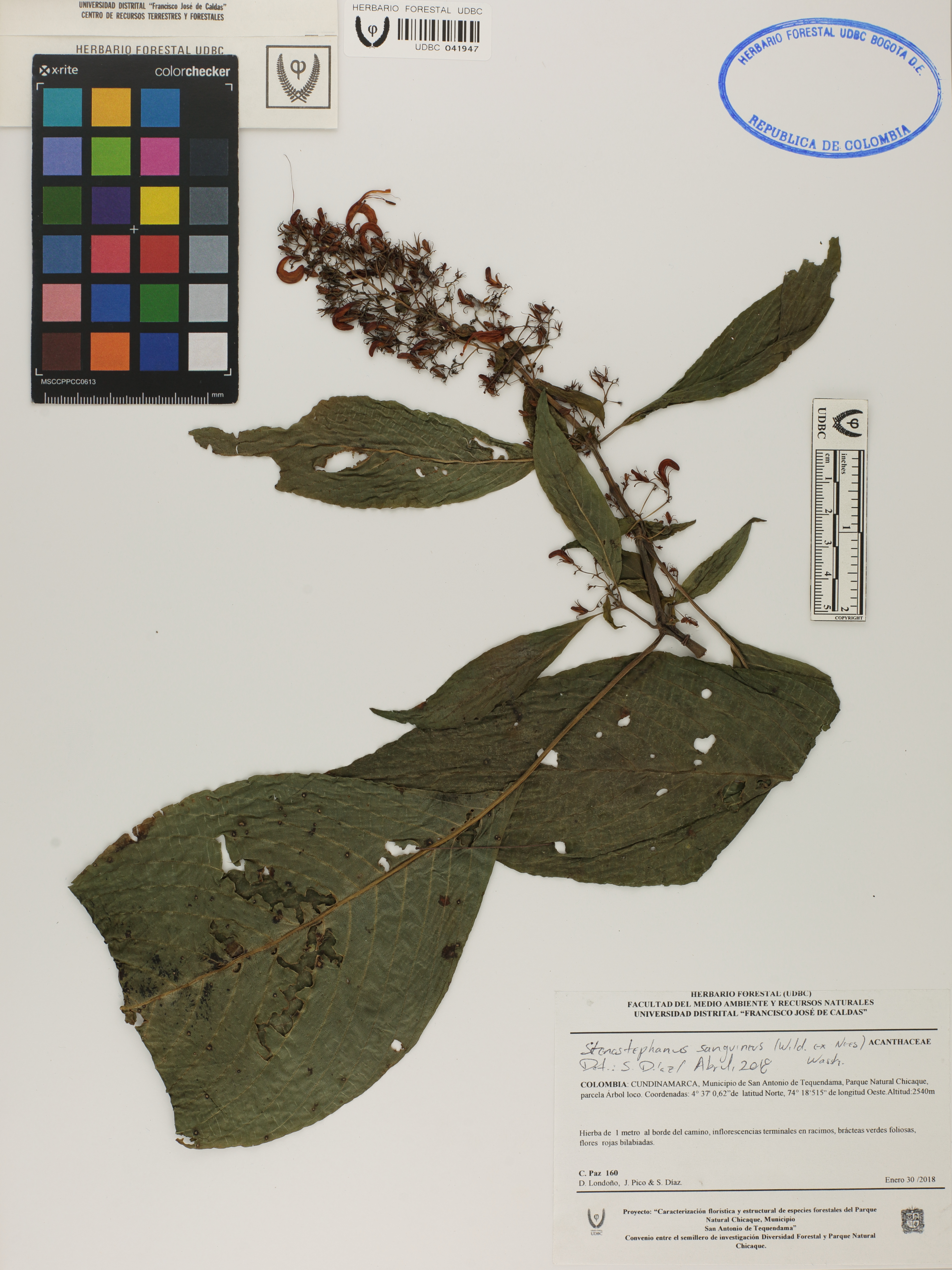 Fotografía del ejemplar Paz, C. 160, determinado como Stenostephanus sanguineus en el año 2018