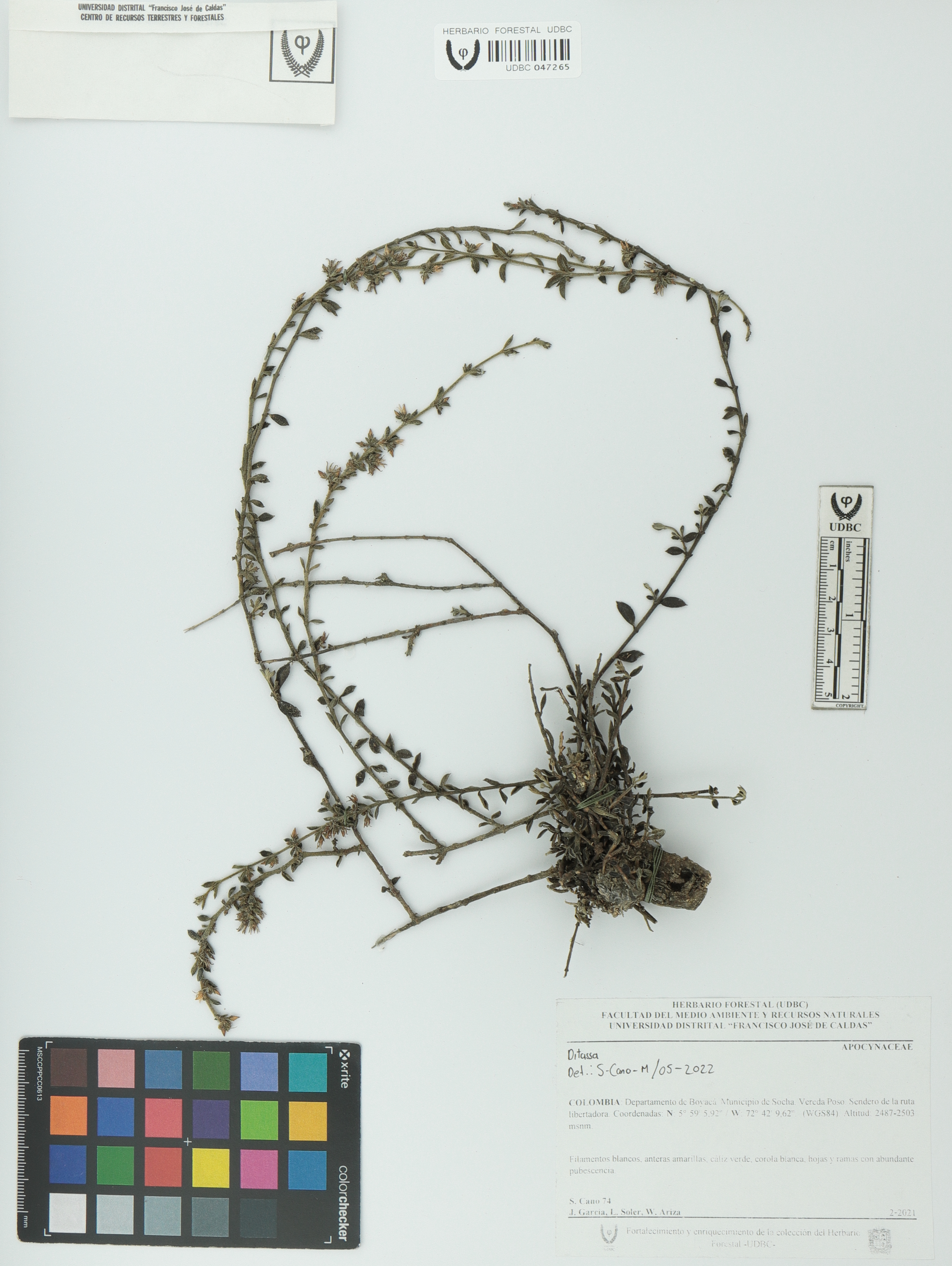 Fotografía del ejemplar Cano, S. 74, determinado como Ditassa sp. en el año 2022