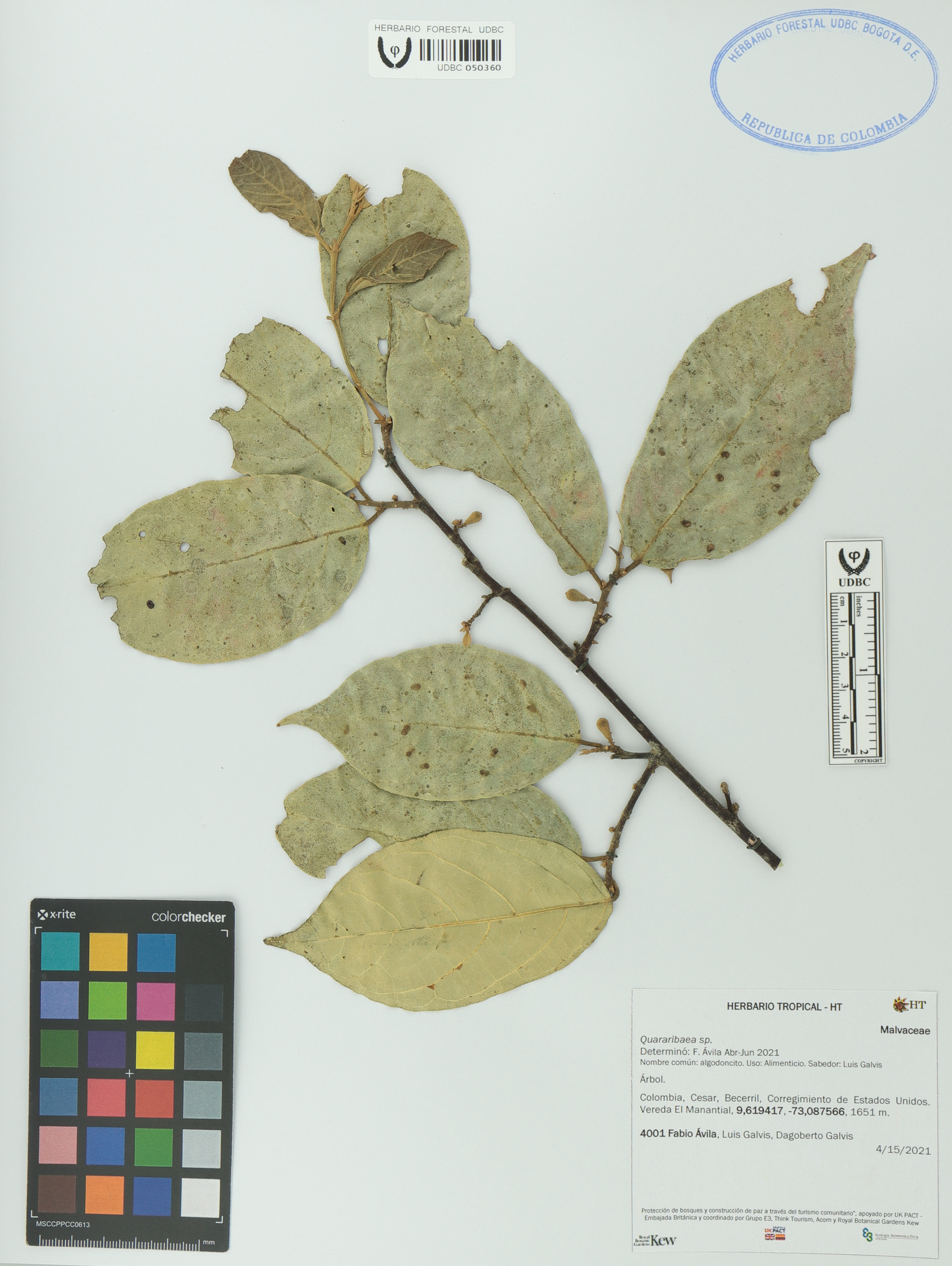 | dc.description | Fotografía del ejemplar Ávila, F. 4001, determinado como Quararibea sp. en el año 2021 | |