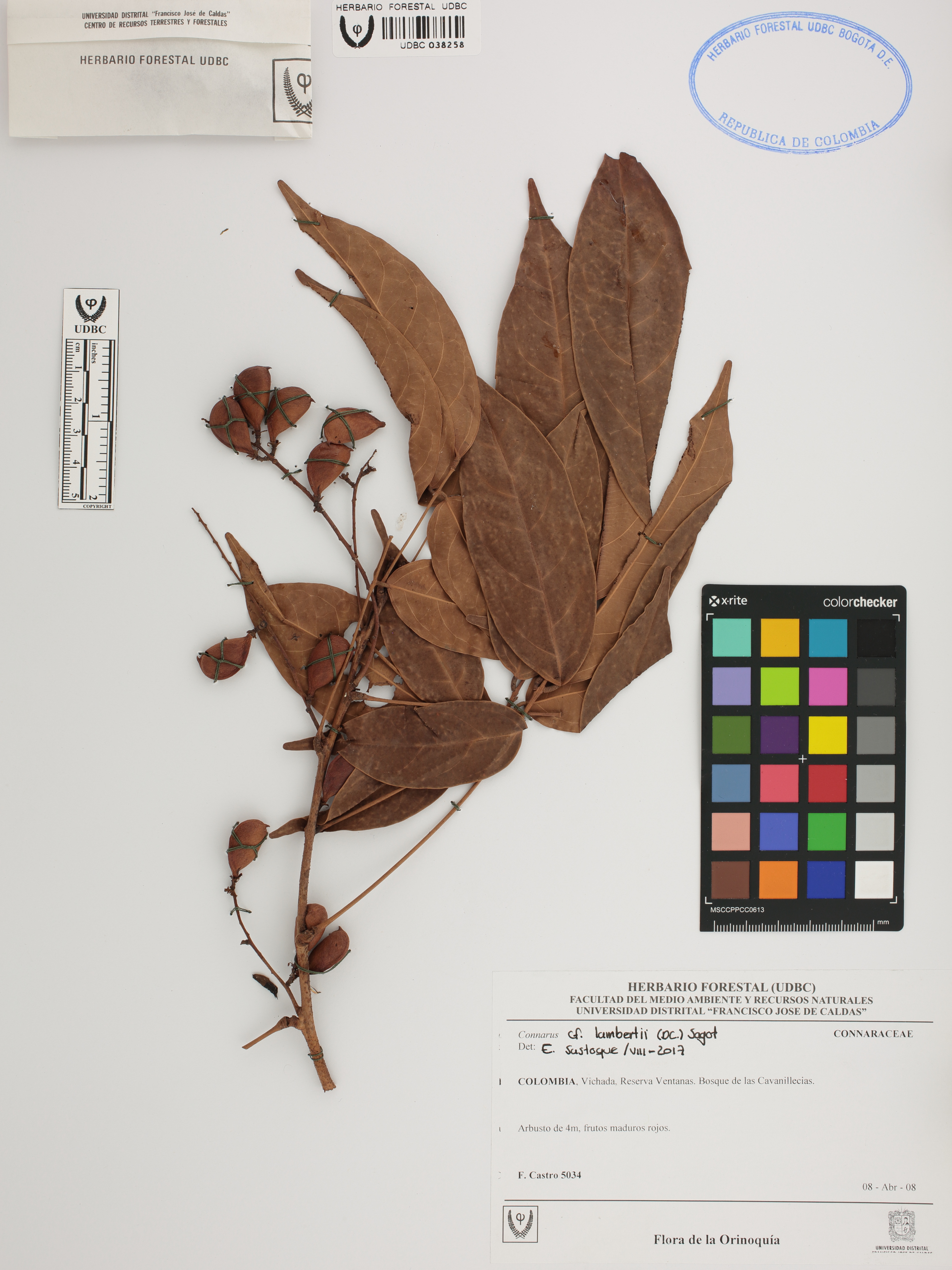 | dc.description | Fotografía del ejemplar Castro, F. 5034, determinado como Connarus lambertii en el año 2017 | |
