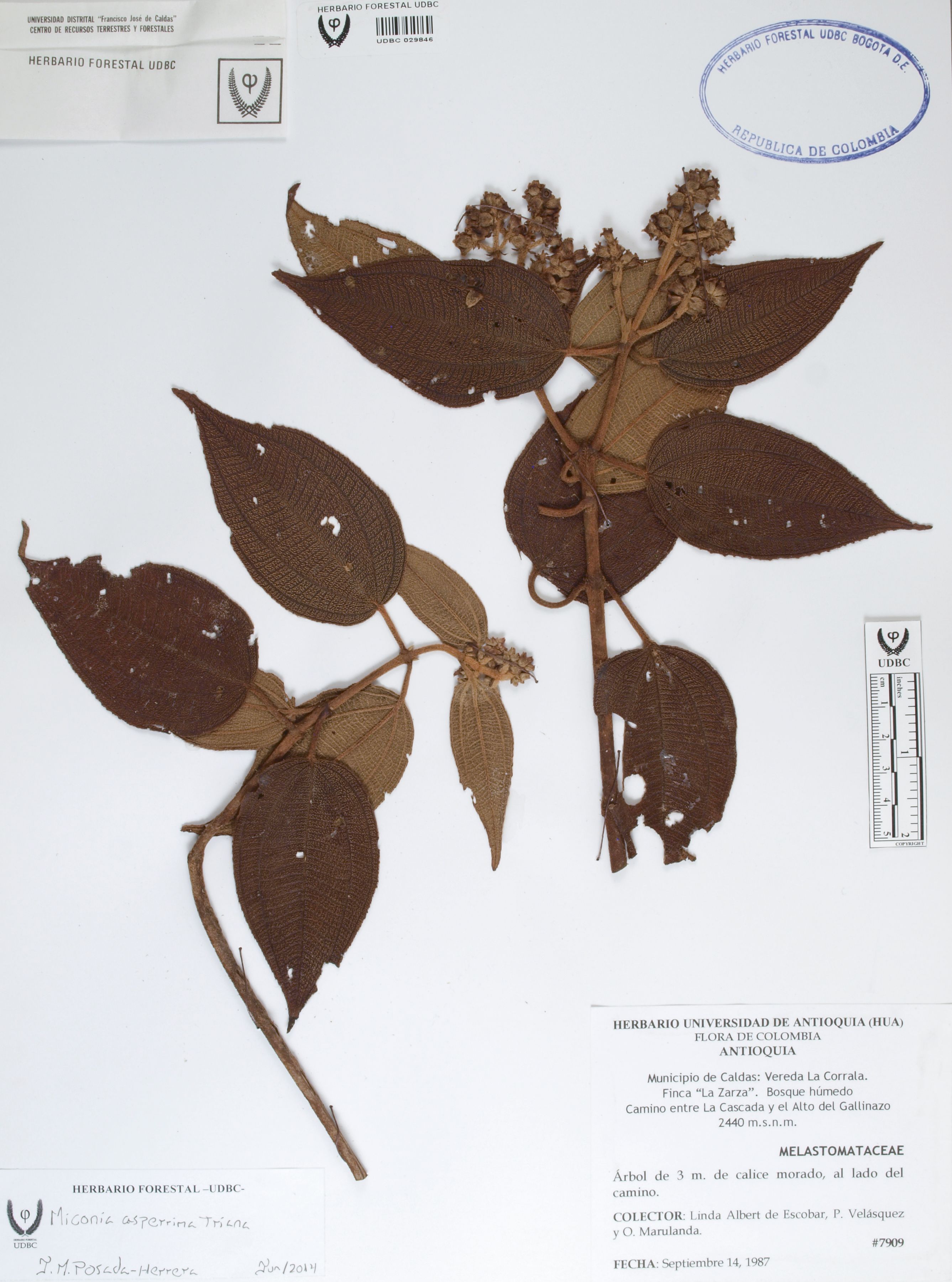 Fotografía del ejemplar Albert de E., L. 7909, determinado como Miconia asperrima en el año 2014